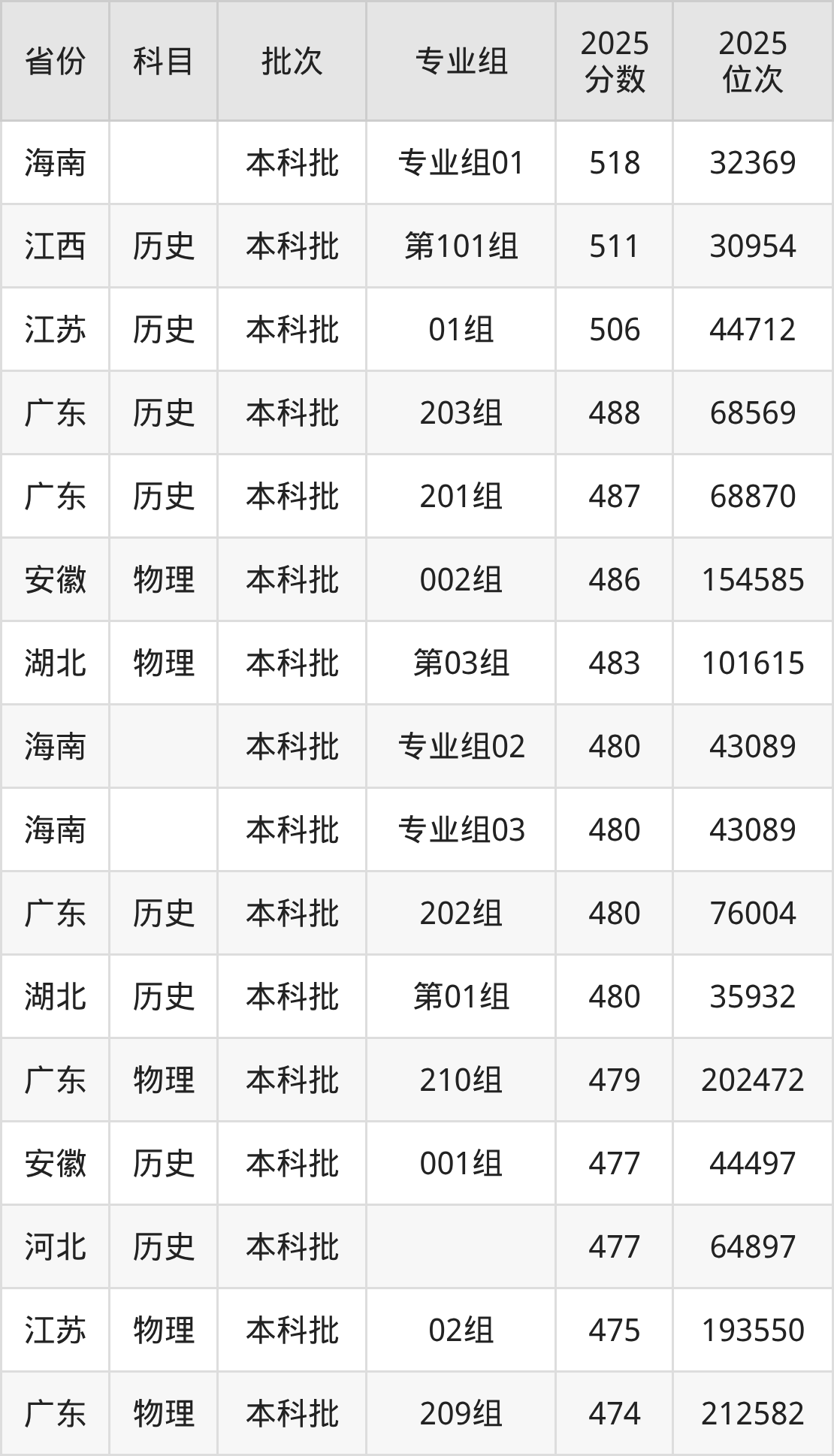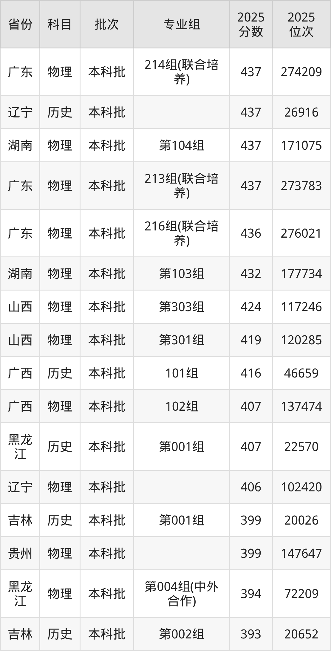 下面是2025年广州南方学院在全国各省录取最低分数据及位次,各位考生也可作为一个参考。