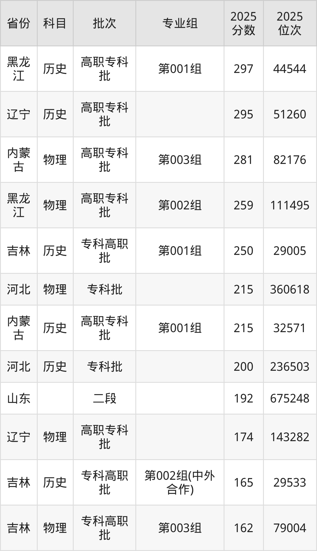下面是2025年吉林科技职业技术学院在全国各省录取最低分数据及位次,各位考生也可作为一个参考。