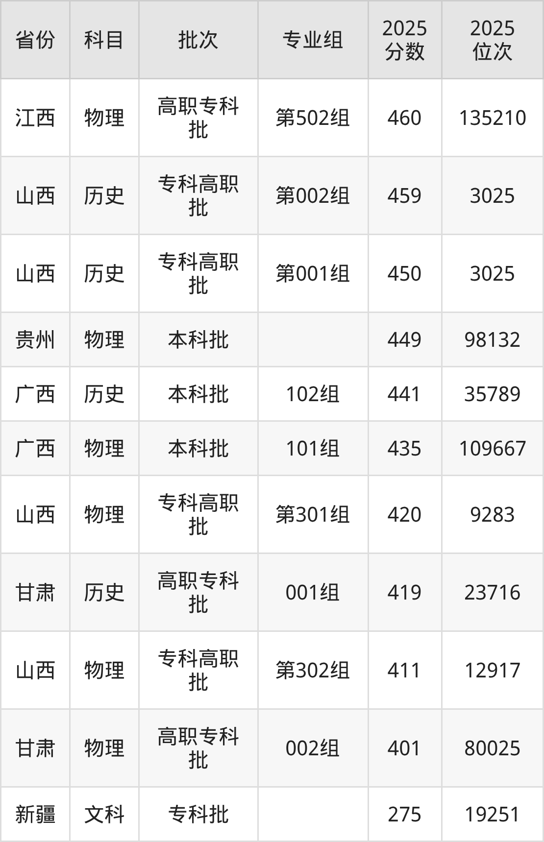2025年金华职业技术大学全国录取分数线275分到561分,录取最高在浙江、录取最低在新疆(文科)。