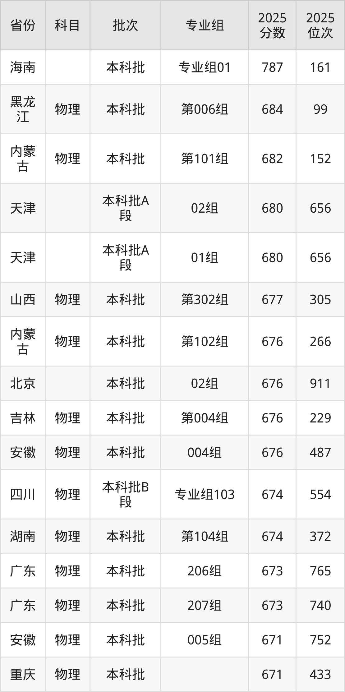 三、哈尔滨工业大学2025年录取分数线