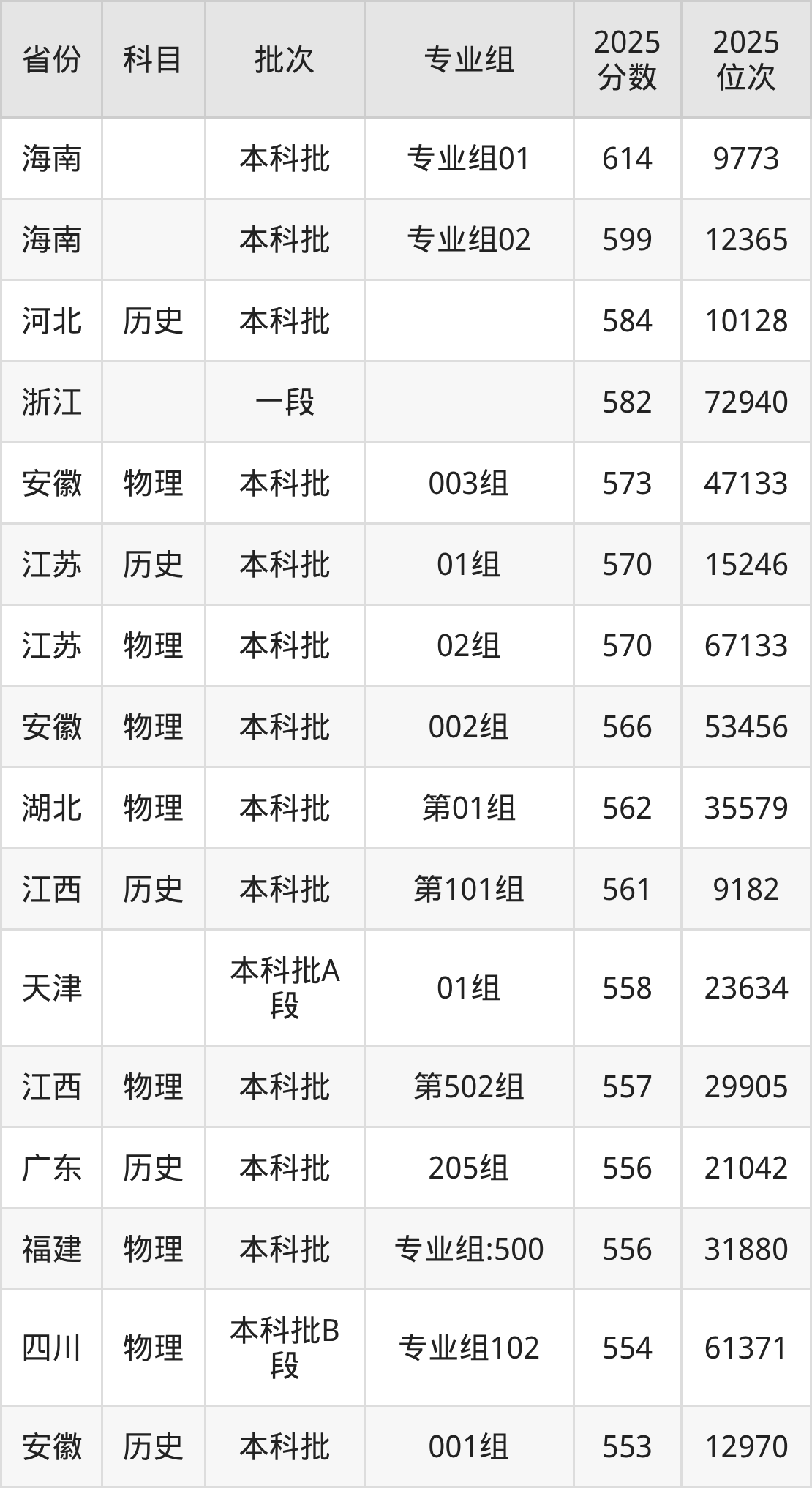 2025年上海工程技术大学全国录取分数线414分到614分,录取最高在海南(专业组01)、录取最低在新疆(文科)。