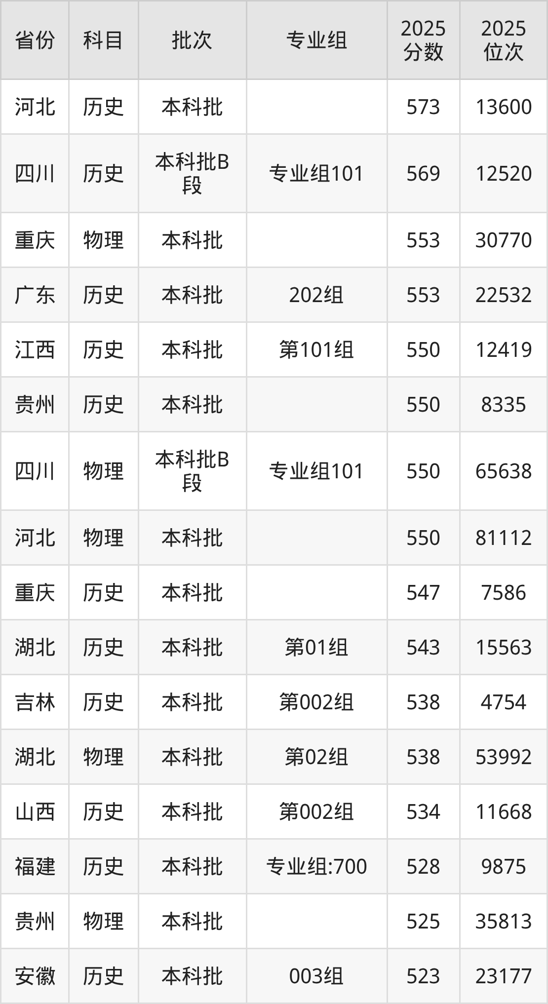 下面是2025年云南警官学院在全国各省录取最低分数据及位次,各位考生也可作为一个参考。