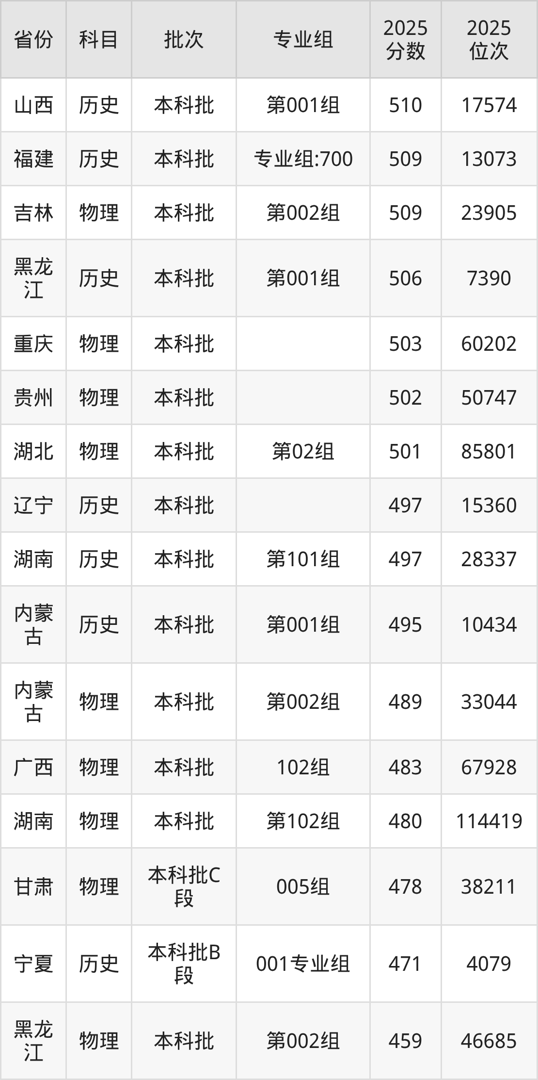 下面是2025年郑州师范学院在全国各省录取最低分数据及位次,各位考生也可作为一个参考。