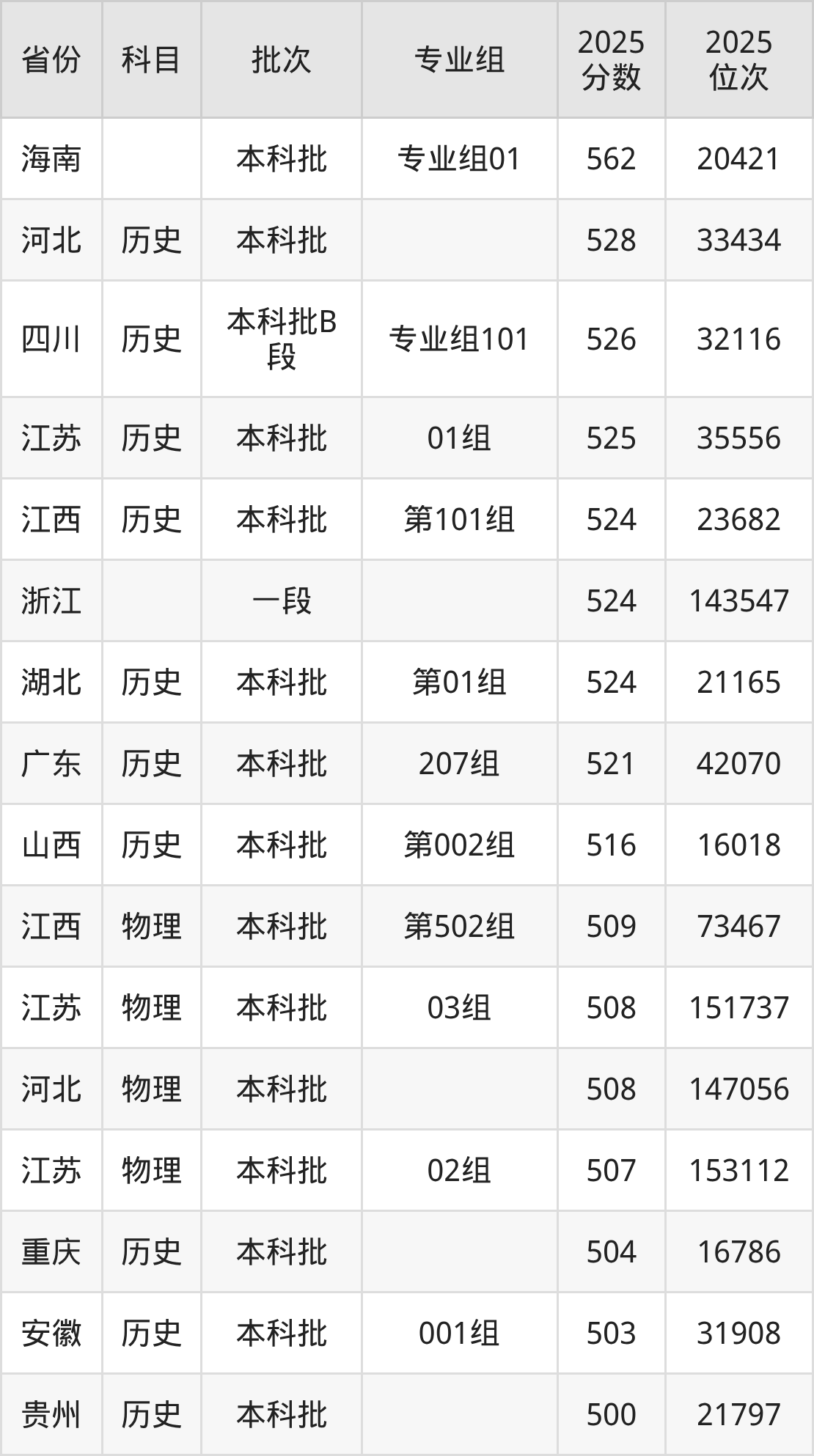 下面是2025年湖南女子学院在全国各省录取最低分数据及位次,各位考生也可作为一个参考。