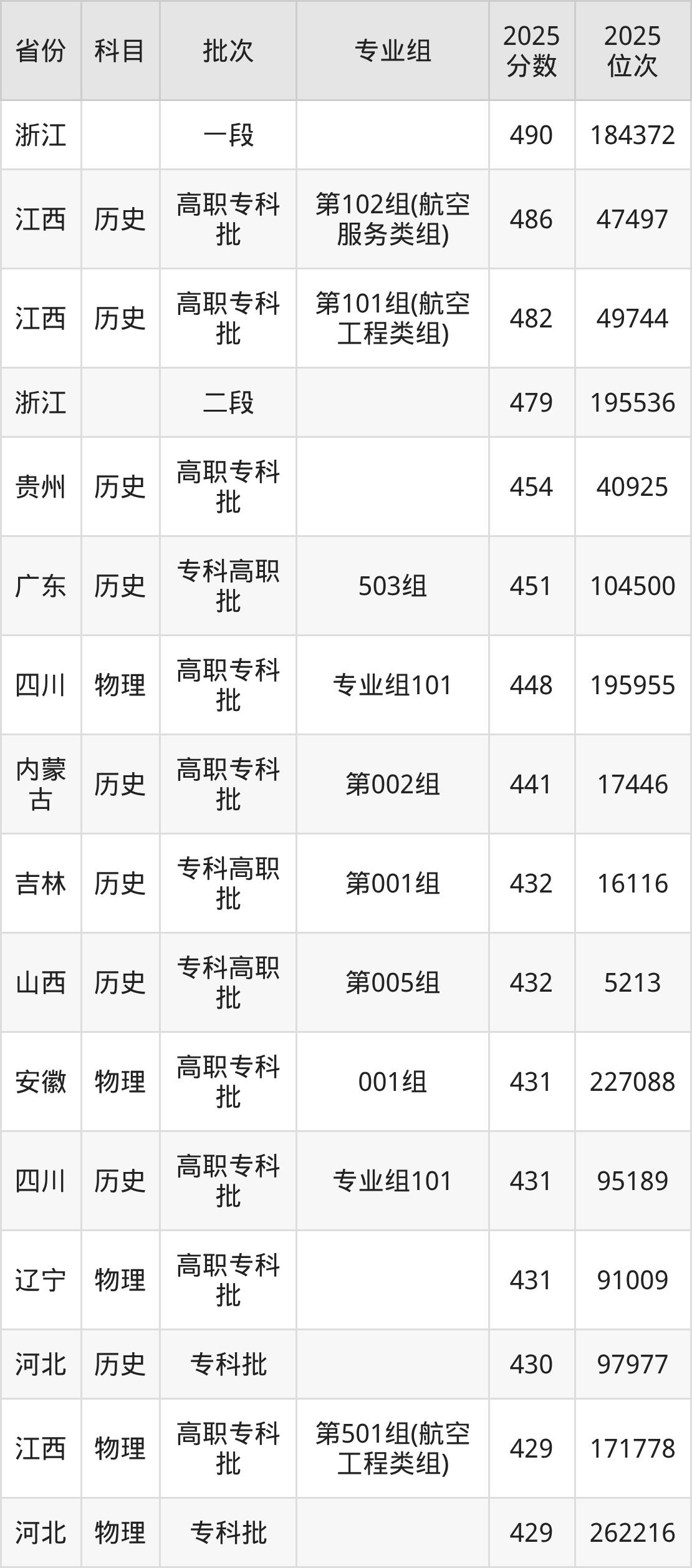 2025年江苏航空职业技术学院全国录取分数线282分到490分,录取最高在浙江、录取最低在新疆(理科)。