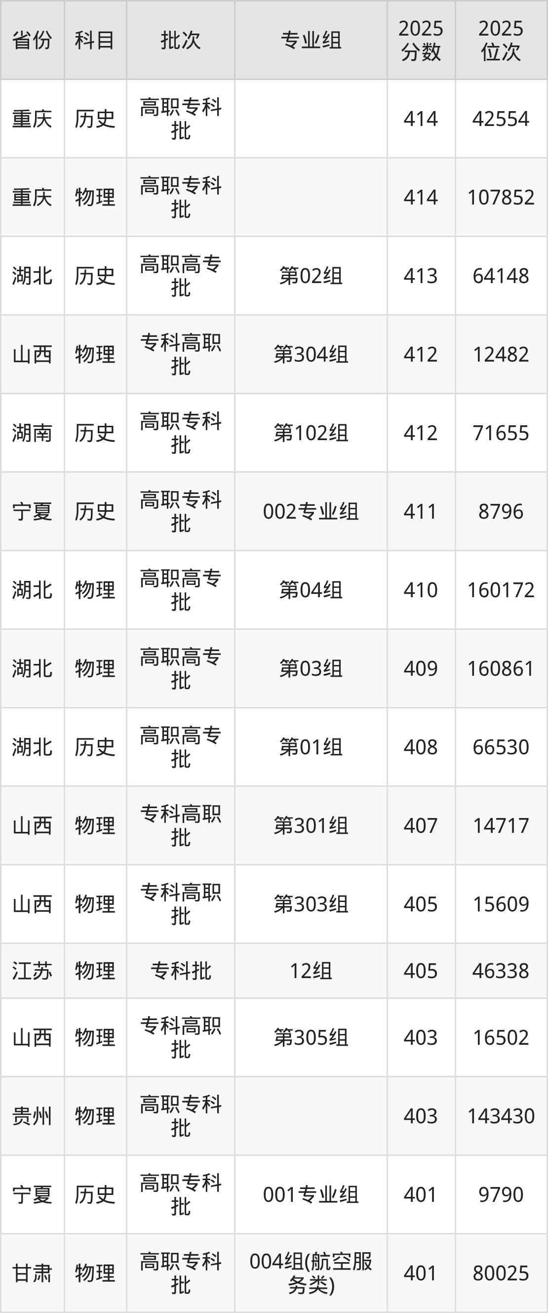 2025年江苏航空职业技术学院各专业录取分数线从392分到443分不等,录取分数线最低的专业是空中乘务;录取分数线最高的专业是无人机应用技术。本文将展示江苏航空职业技术学院所有专业最低分数线及位次,供2026届高考生参考。