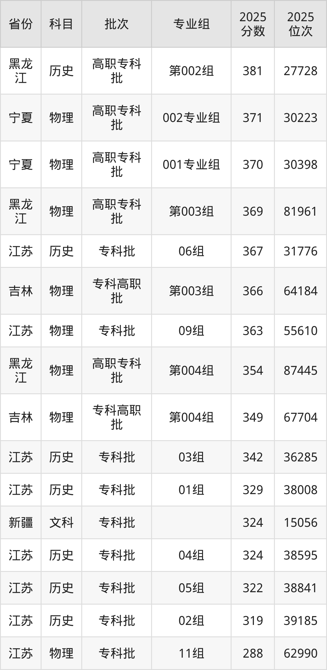 下面是2025年江苏航空职业技术学院在全国各省录取最低分数据及位次,各位考生也可作为一个参考。