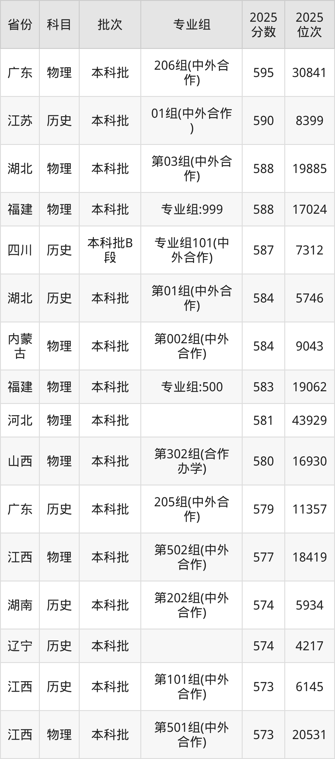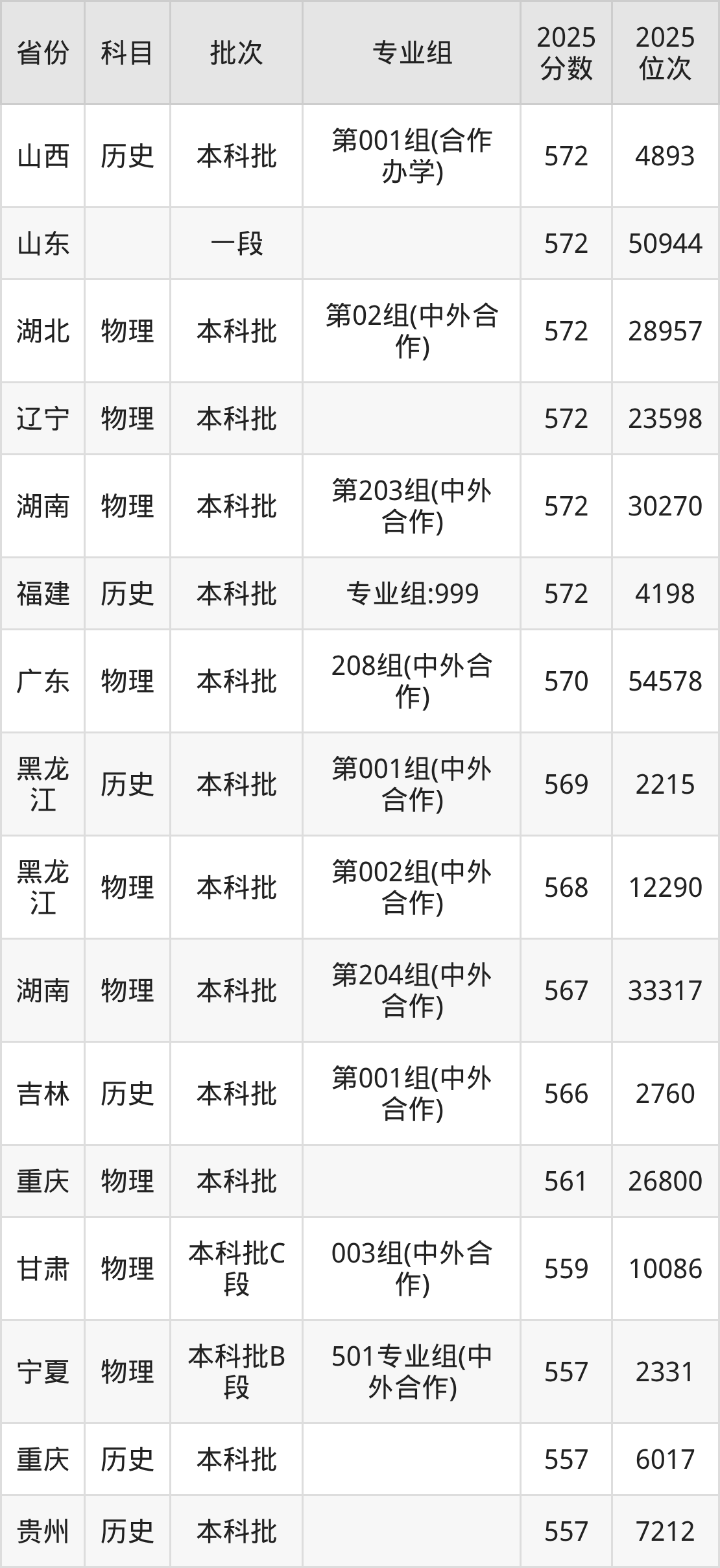 三、北京交通大学(威海校区)2025年录取分数线