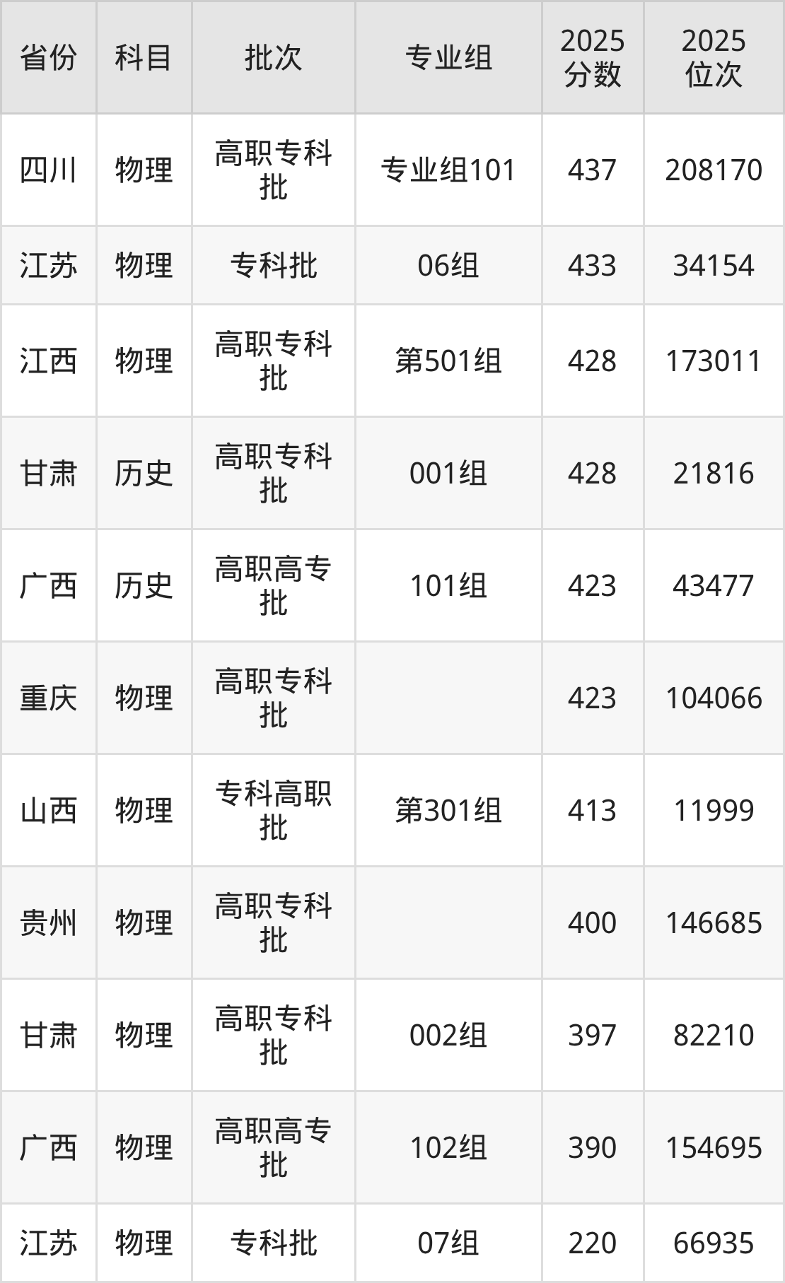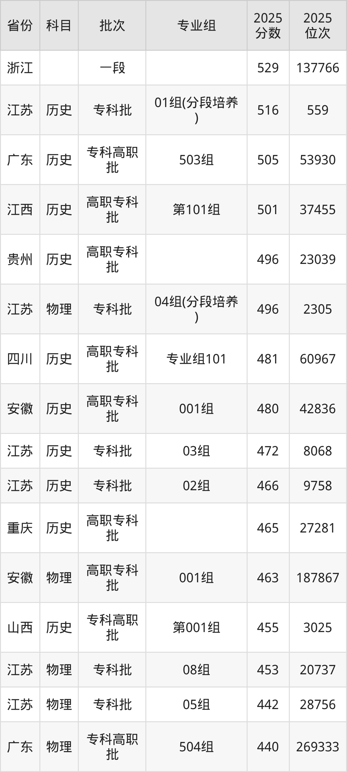 下面是2025年苏州卫生职业技术学院在全国各省录取最低分数据及位次,各位考生也可作为一个参考。