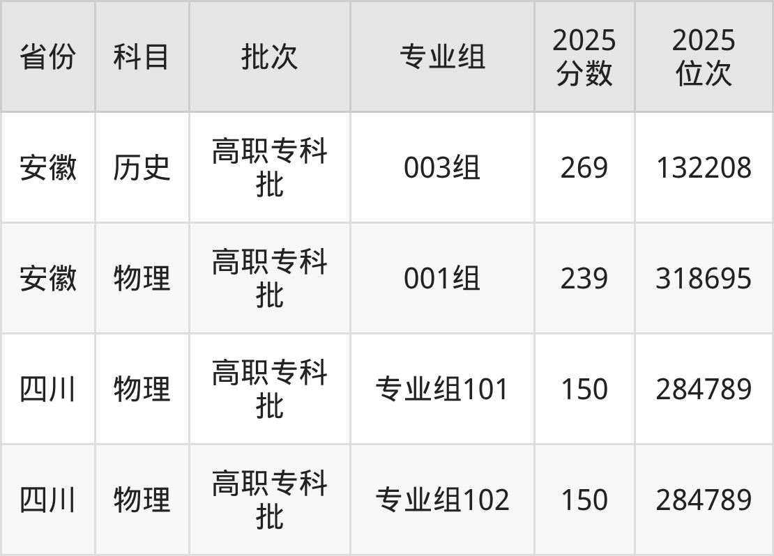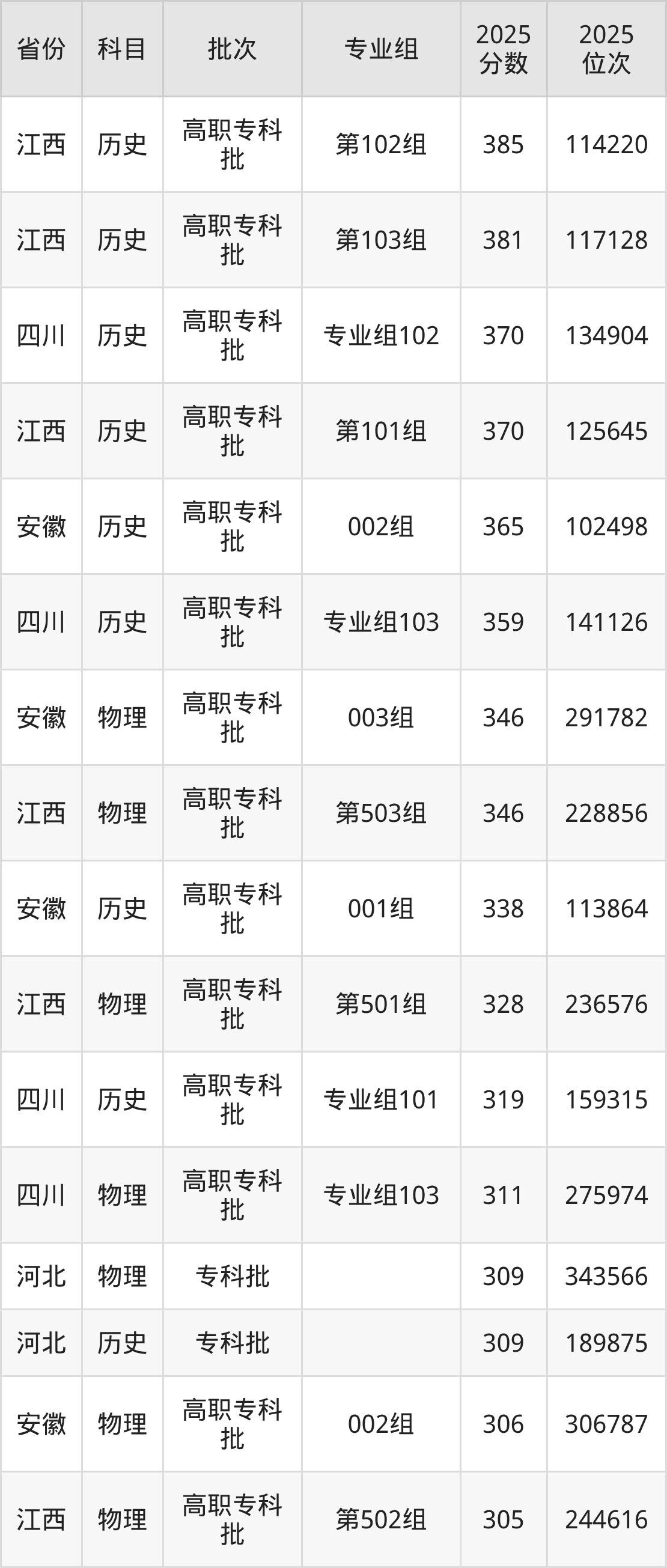 2025年泉州工程职业技术学院全国录取分数线150分到385分,录取最高在江西(第102组)、录取最低在四川(专业组102)。