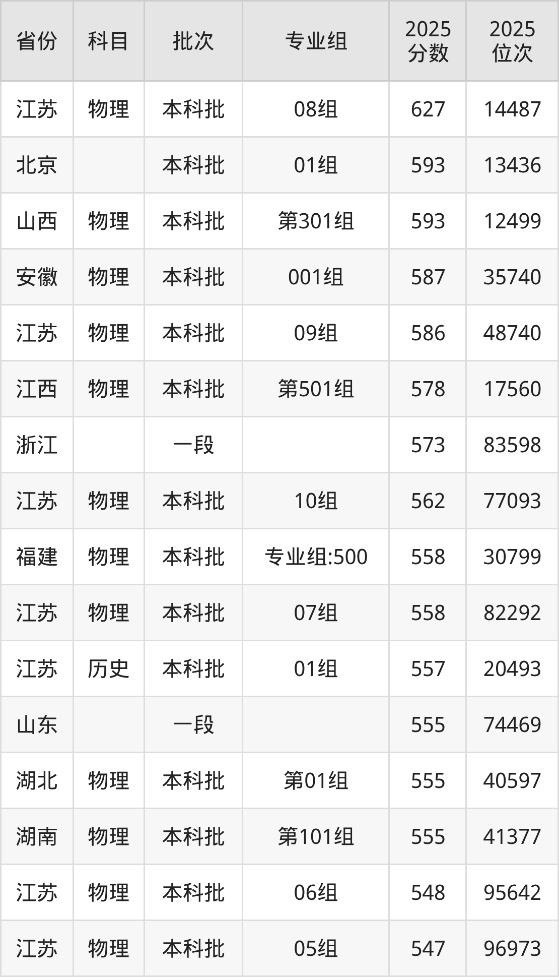 下面是2025年徐州医科大学在全国各省录取最低分数据及位次,各位考生也可作为一个参考。