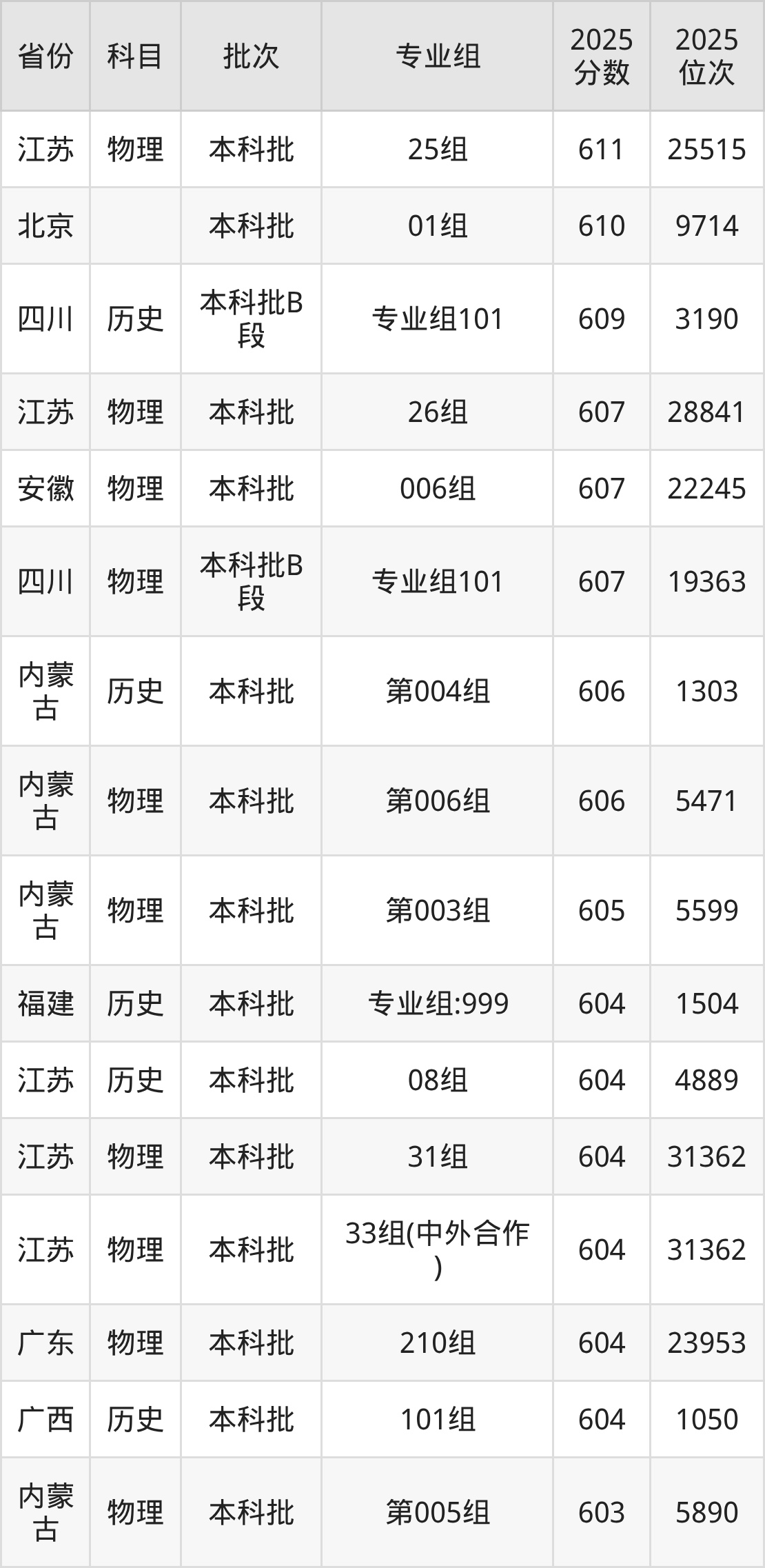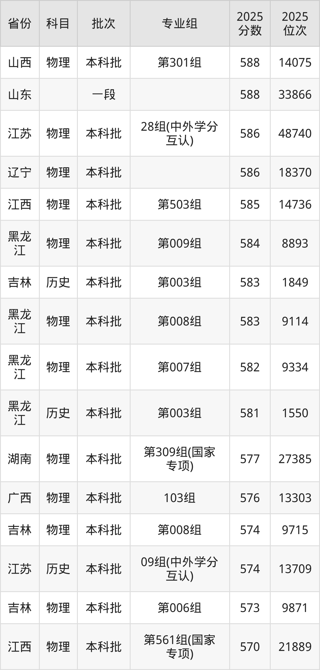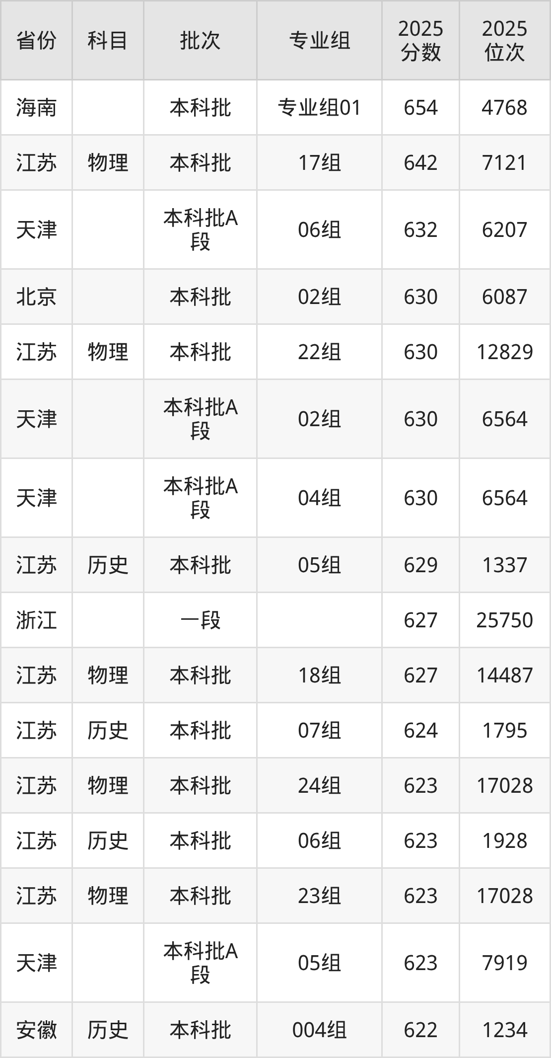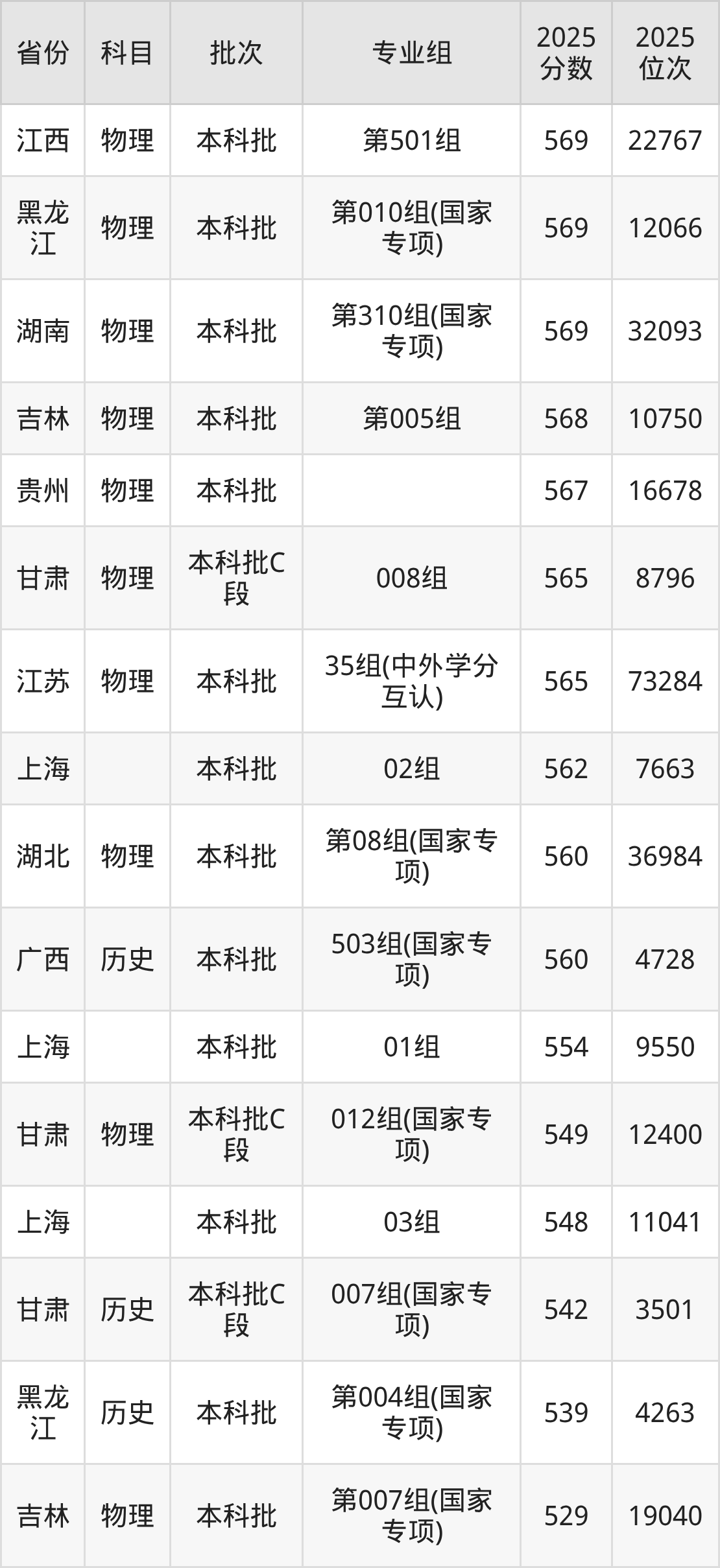 参考2025年山东省高考招录数据,按照分数线从高到低依次为大家展示南京师范大学各个专业录取分数线。