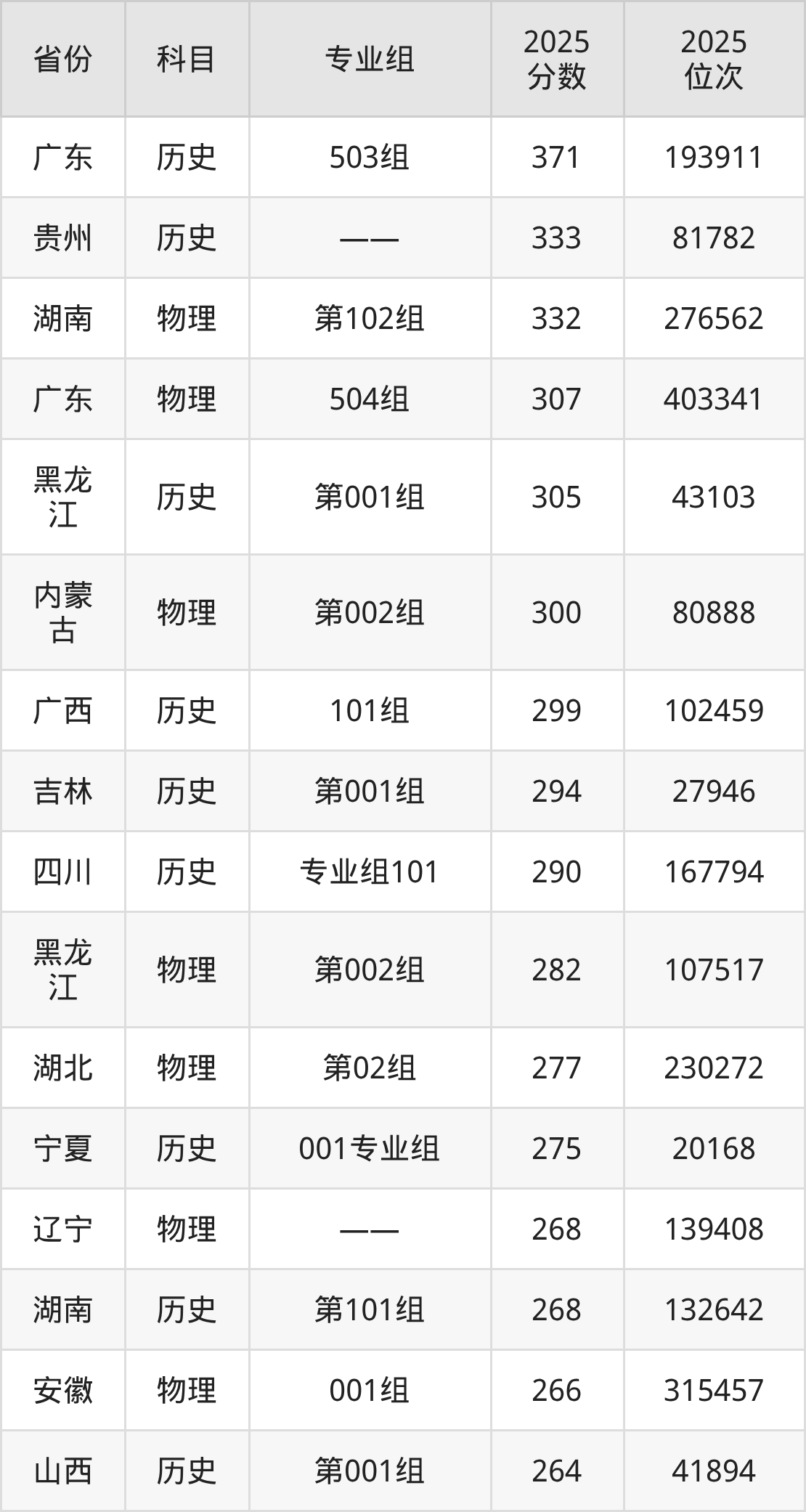 2025年石家庄科技信息职业学院全国录取分数线150分到371分,录取最高在广东(历史类503组)、录取最低在四川(物理类专业组101)。