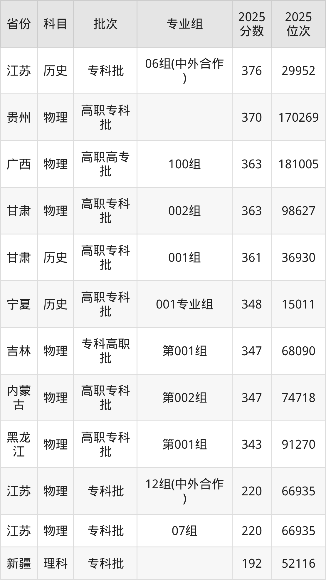 下面是2025年江苏食品药品职业技术学院在全国各省录取最低分数据及位次,各位考生也可作为一个参考。