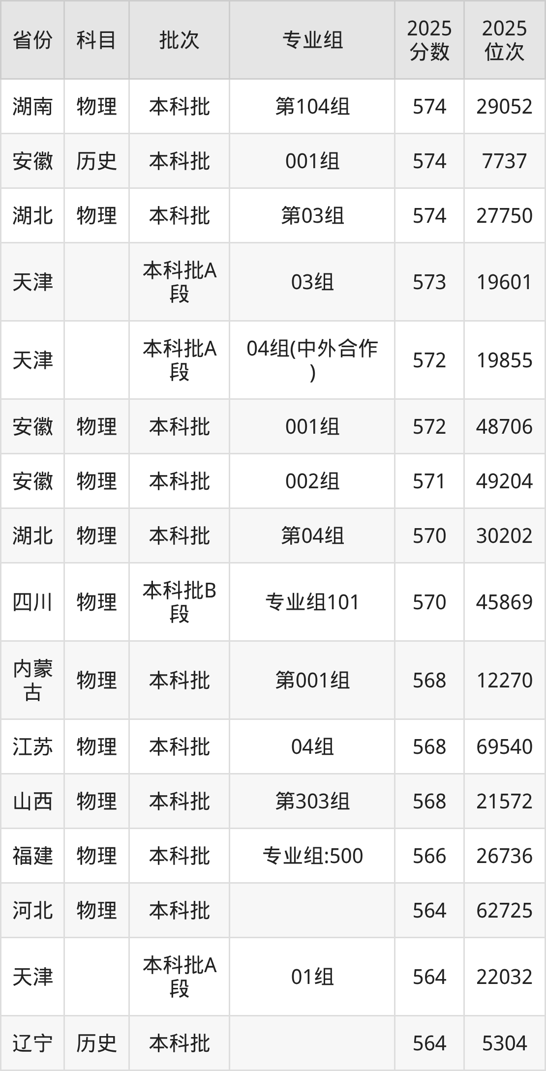下面是2025年天津财经大学在全国各省录取最低分数据及位次,各位考生也可作为一个参考。