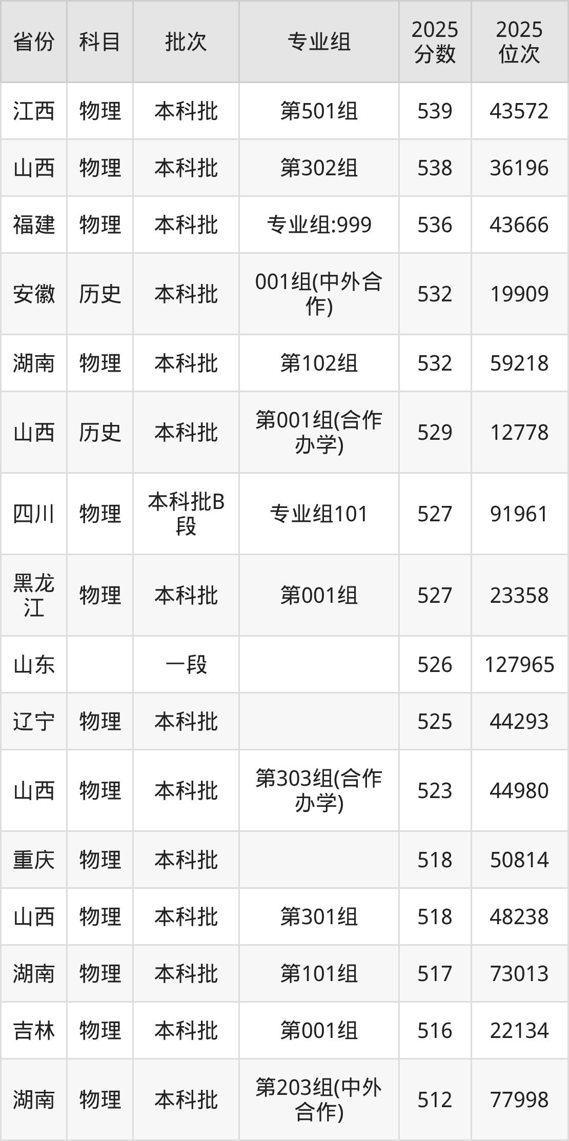 2025年上海电机学院各专业录取分数线从526分到556分不等,录取分数线最低的专业是工业工程、物流管理;录取分数线最高的专业是计算机类。本文将展示上海电机学院所有专业最低分数线及位次,供2026届高考生参考。
