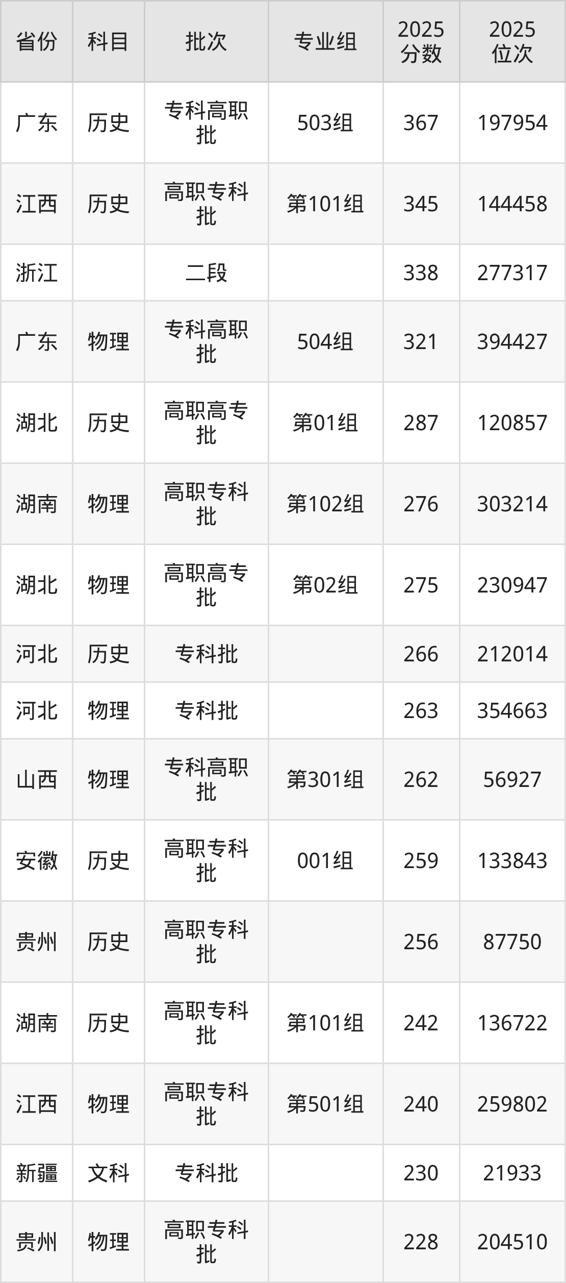 下面是2025年黄冈科技职业学院在全国各省录取最低分数据及位次,各位考生也可作为一个参考。