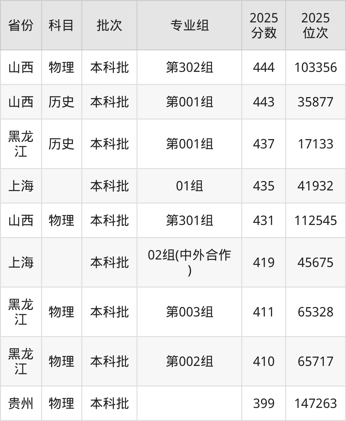 2025年南京传媒学院全国录取分数线399分到547分,录取最高在浙江、录取最低在贵州(物理)。