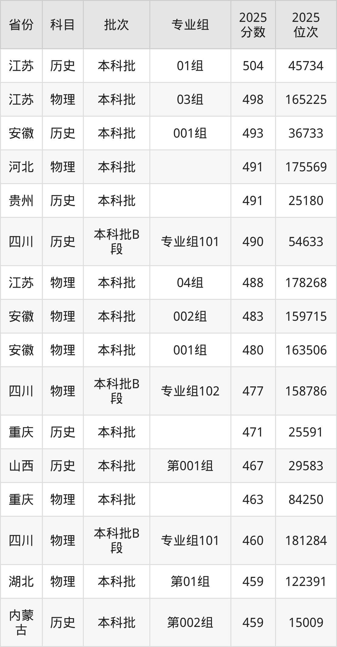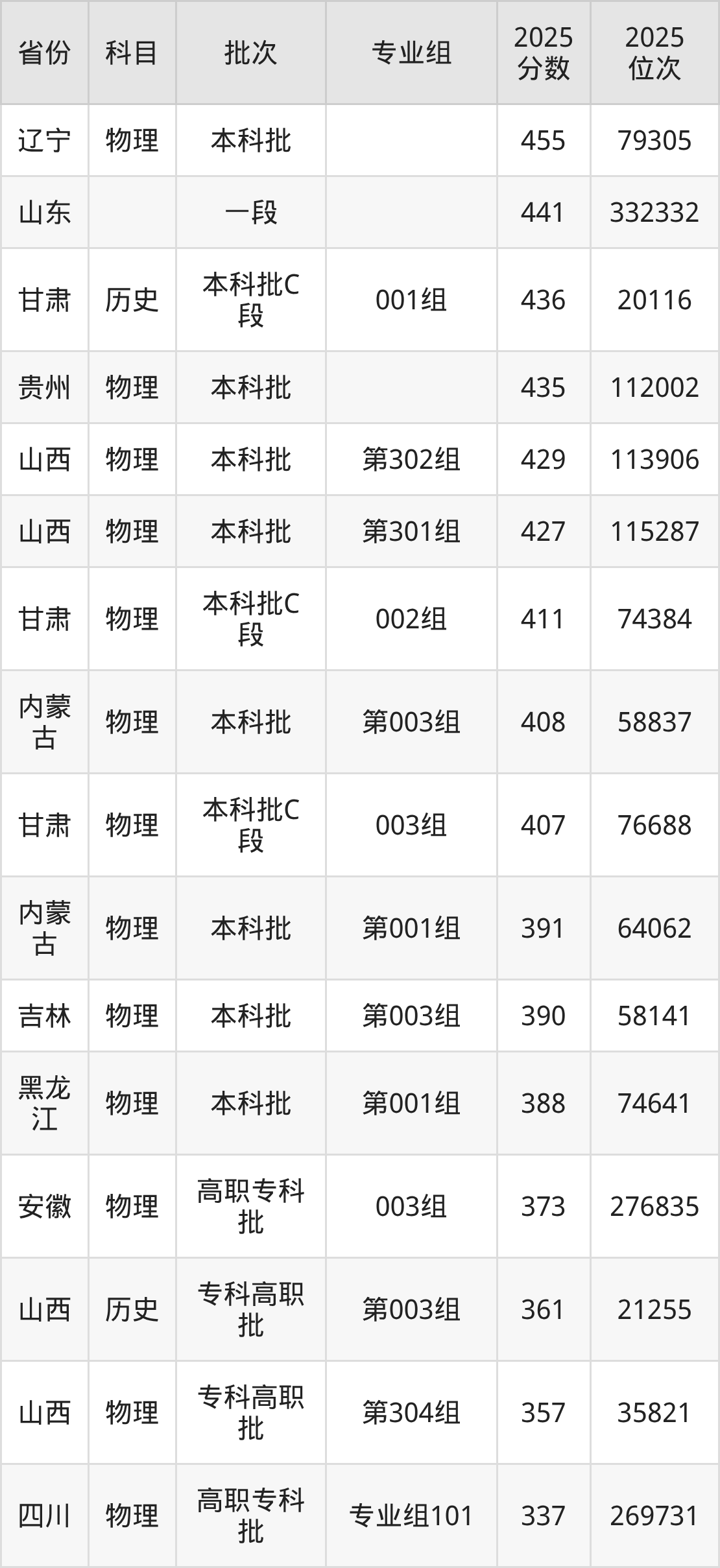 下面是2025年潍坊科技学院在全国各省录取最低分数据及位次,各位考生也可作为一个参考。