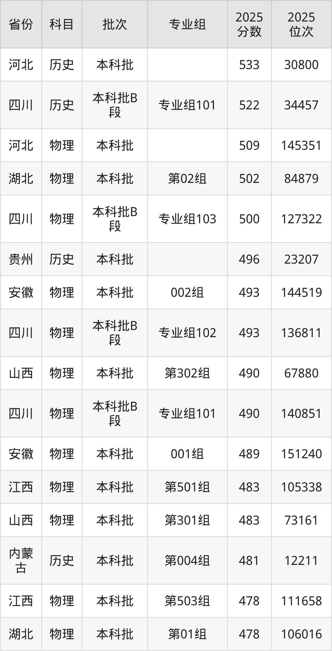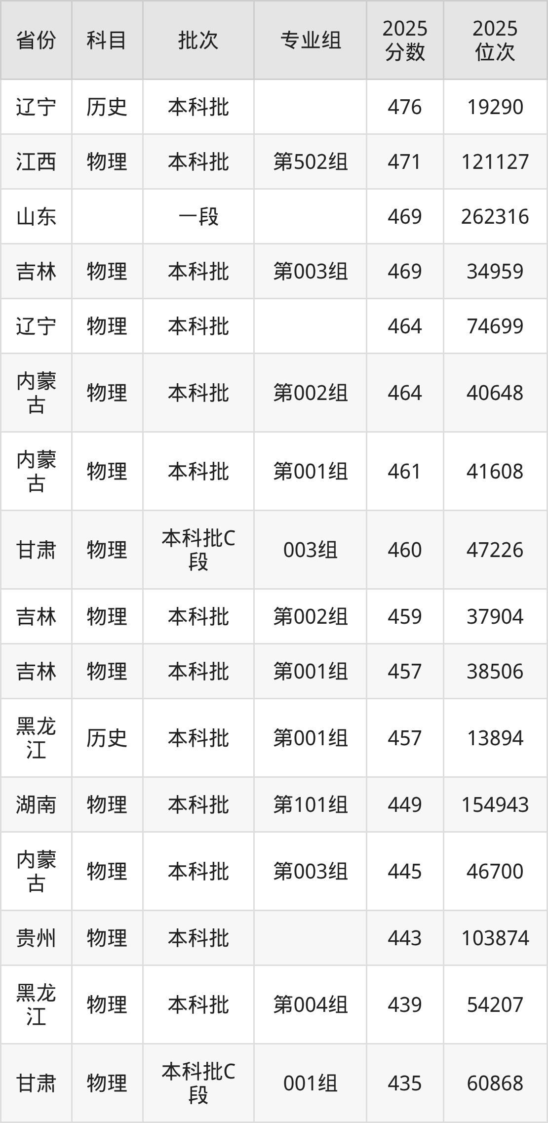 下面是2025年营口理工学院在全国各省录取最低分数据及位次,各位考生也可作为一个参考。