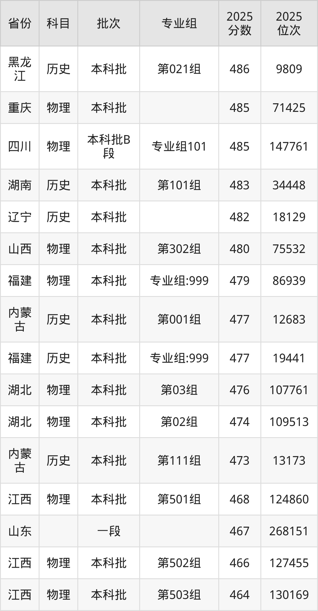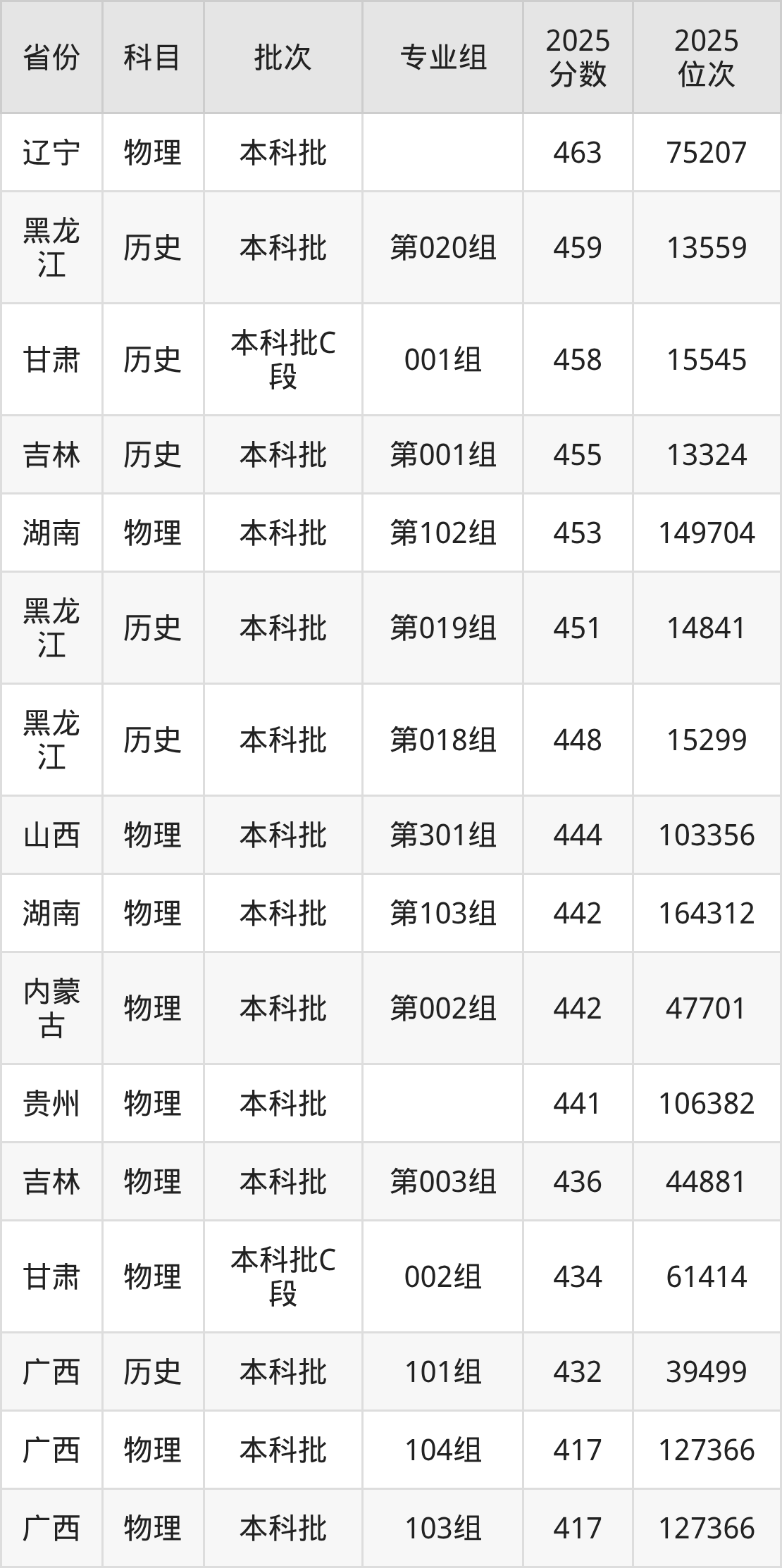 下面是2025年牡丹江师范学院在全国各省录取最低分数据及位次,各位考生也可作为一个参考。