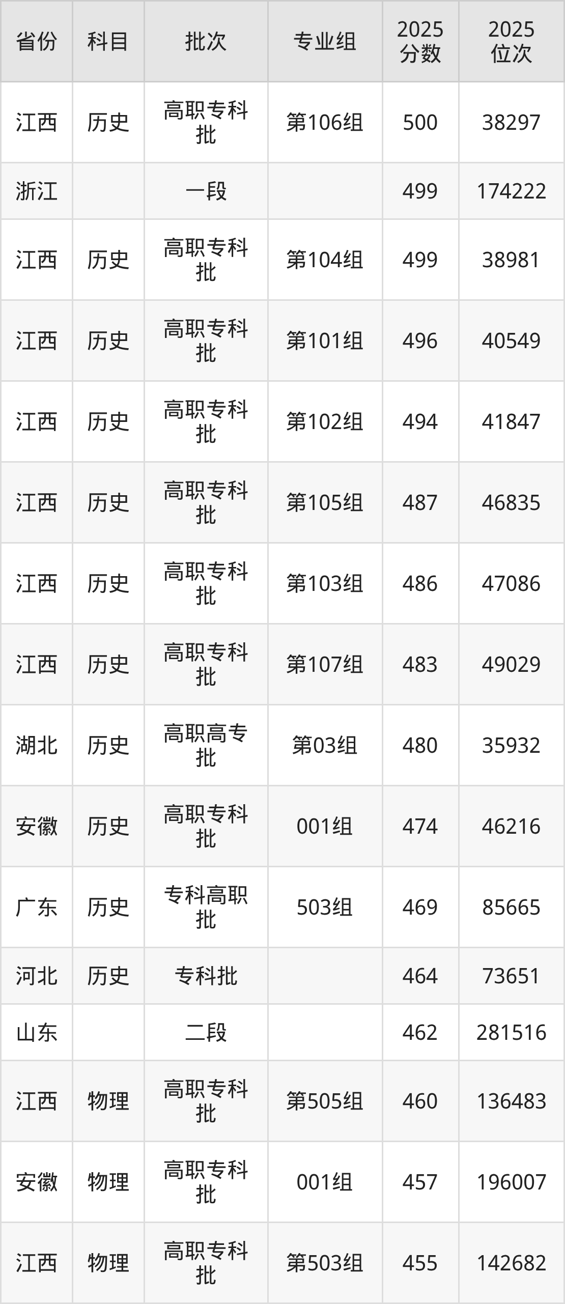 2025年浙江经济职业技术学院全国录取分数线394分到500分,录取最高在江西(第106组)、录取最低在山西(第301组)。