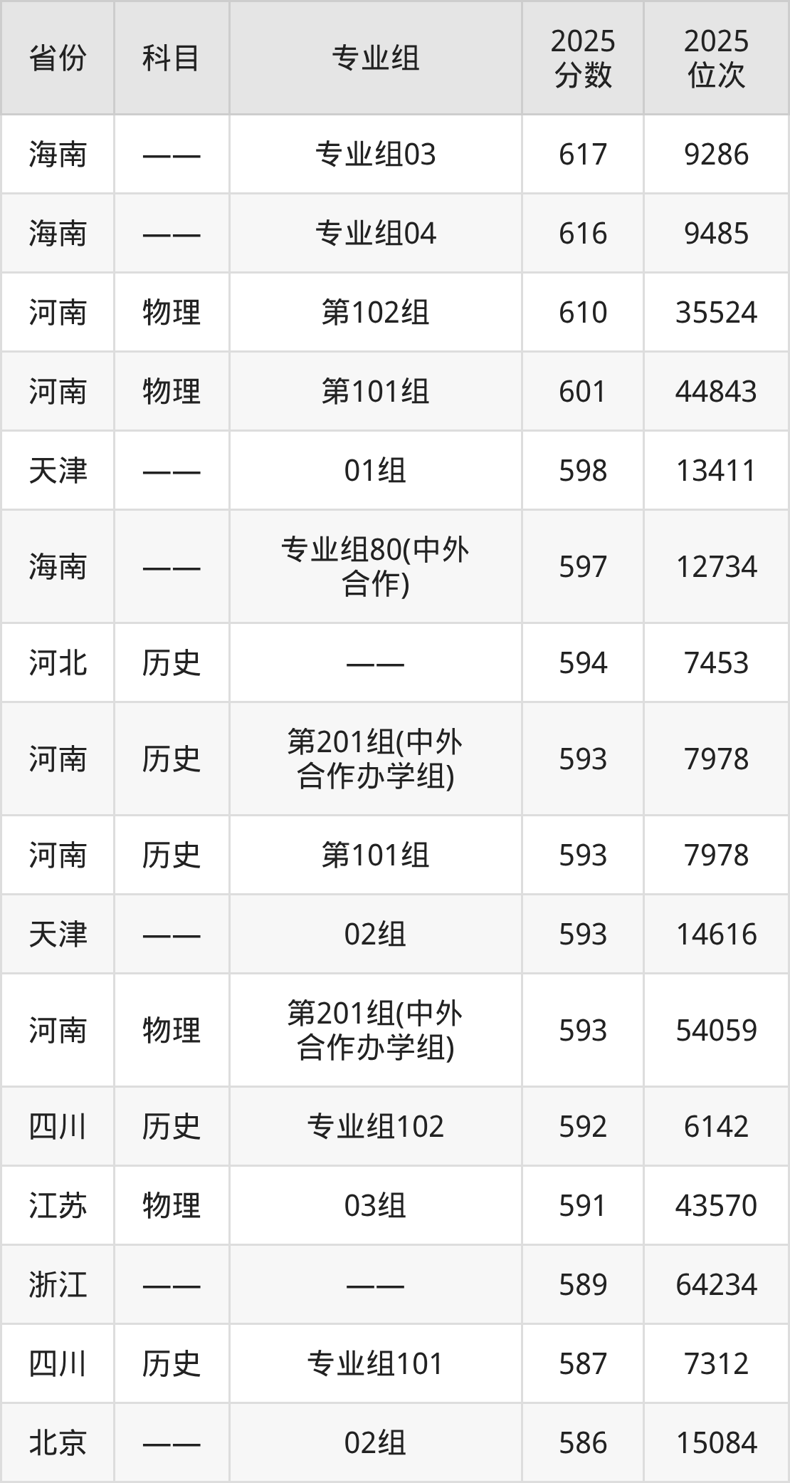 9、麻醉学:587分、位次34901名;