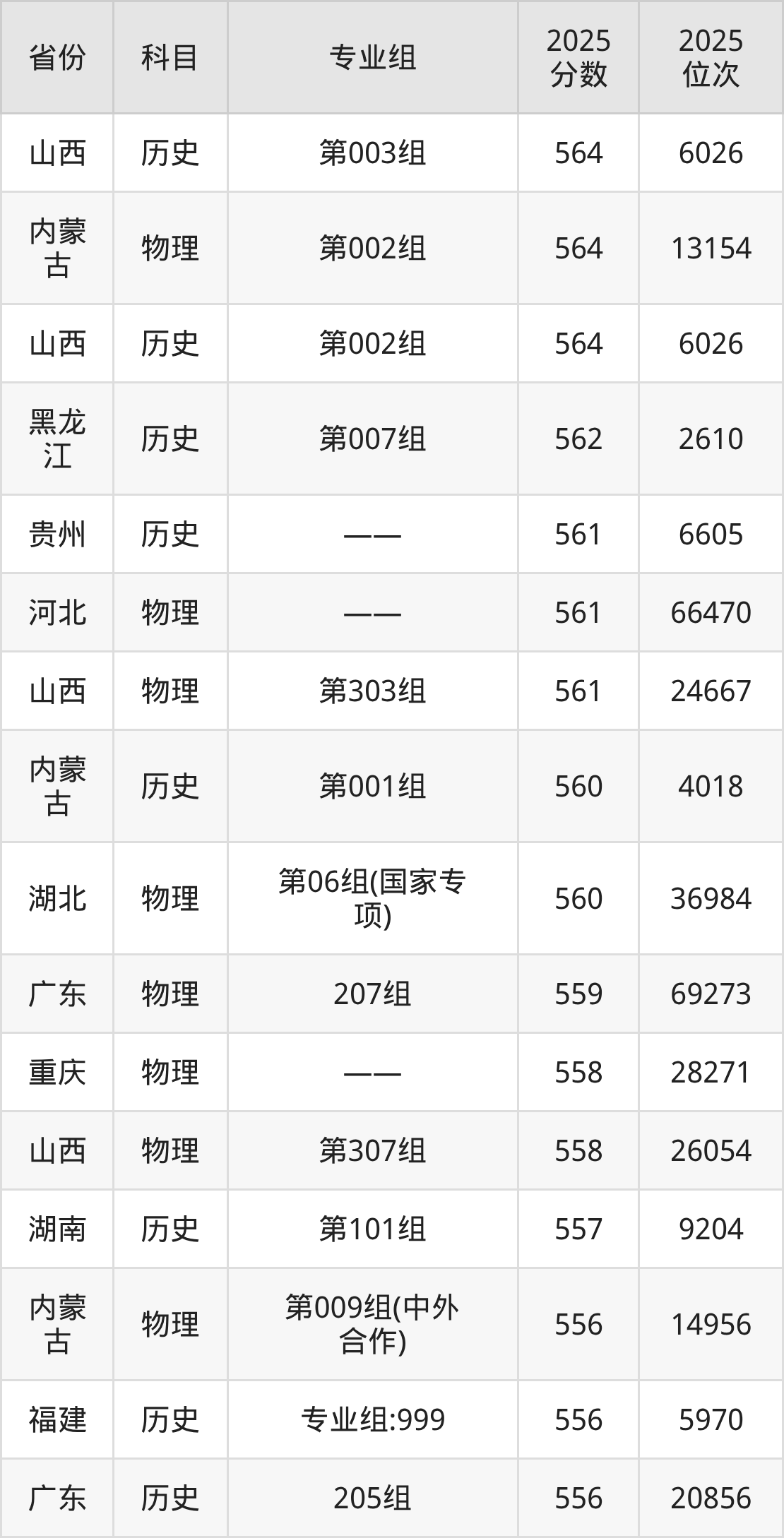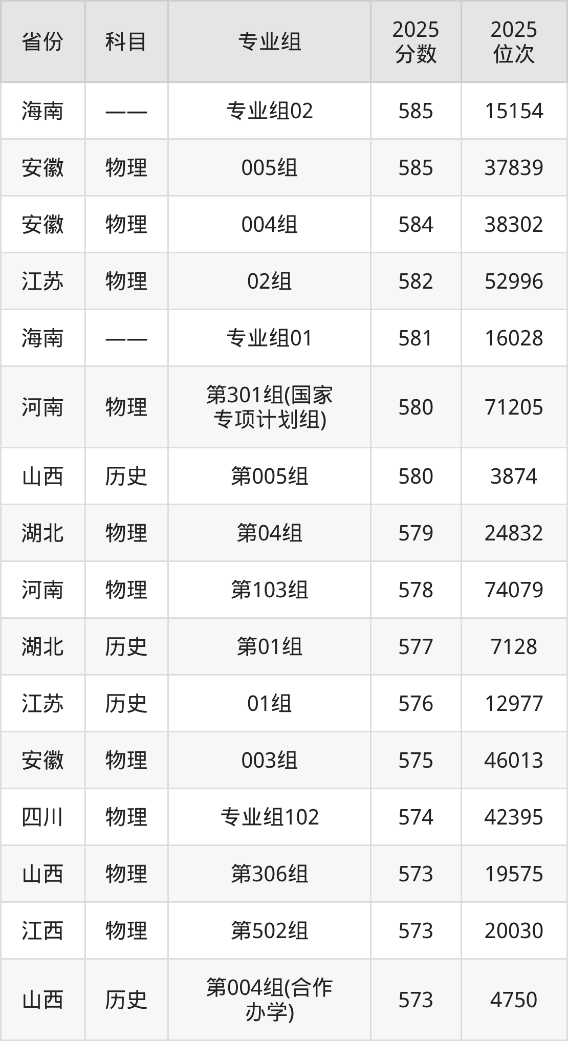 18、药学类:576分、位次45865名;