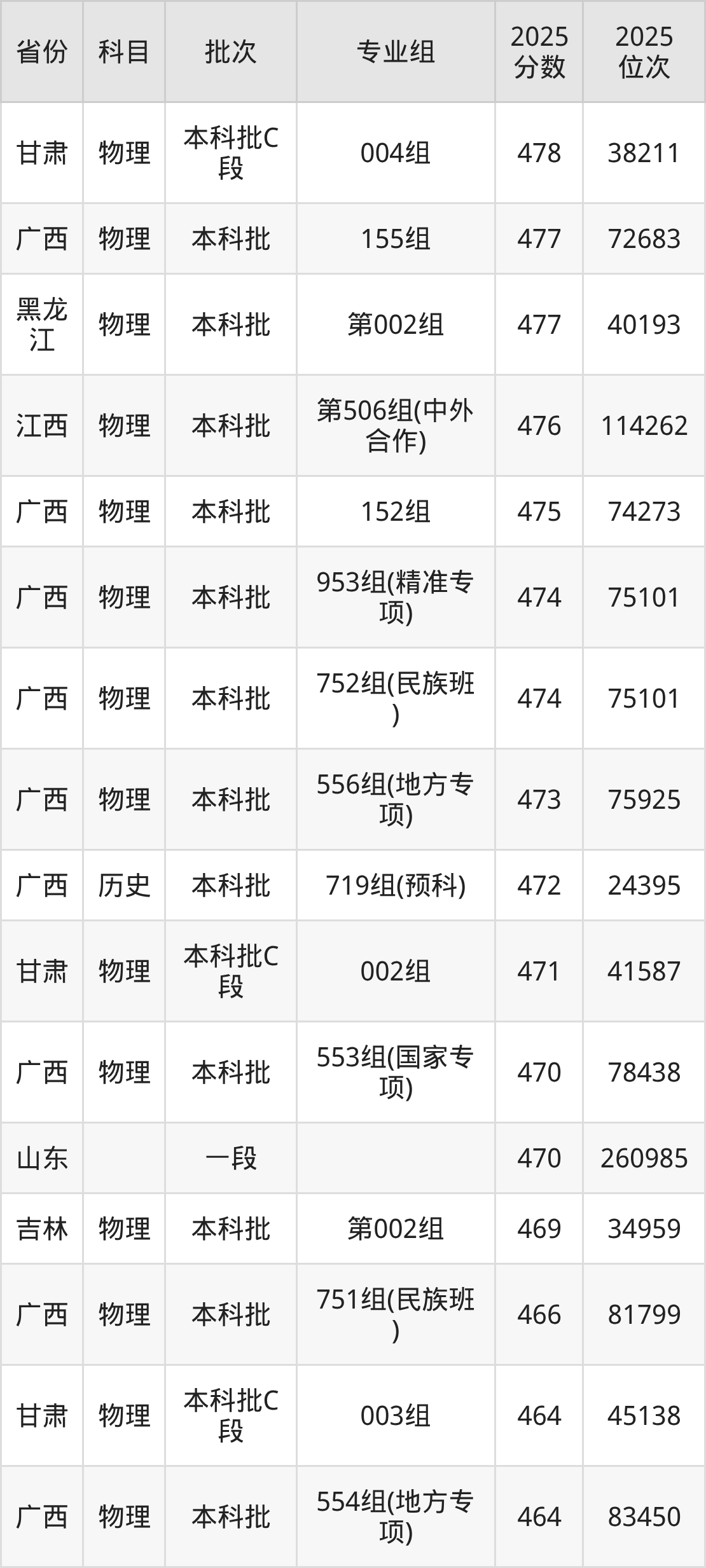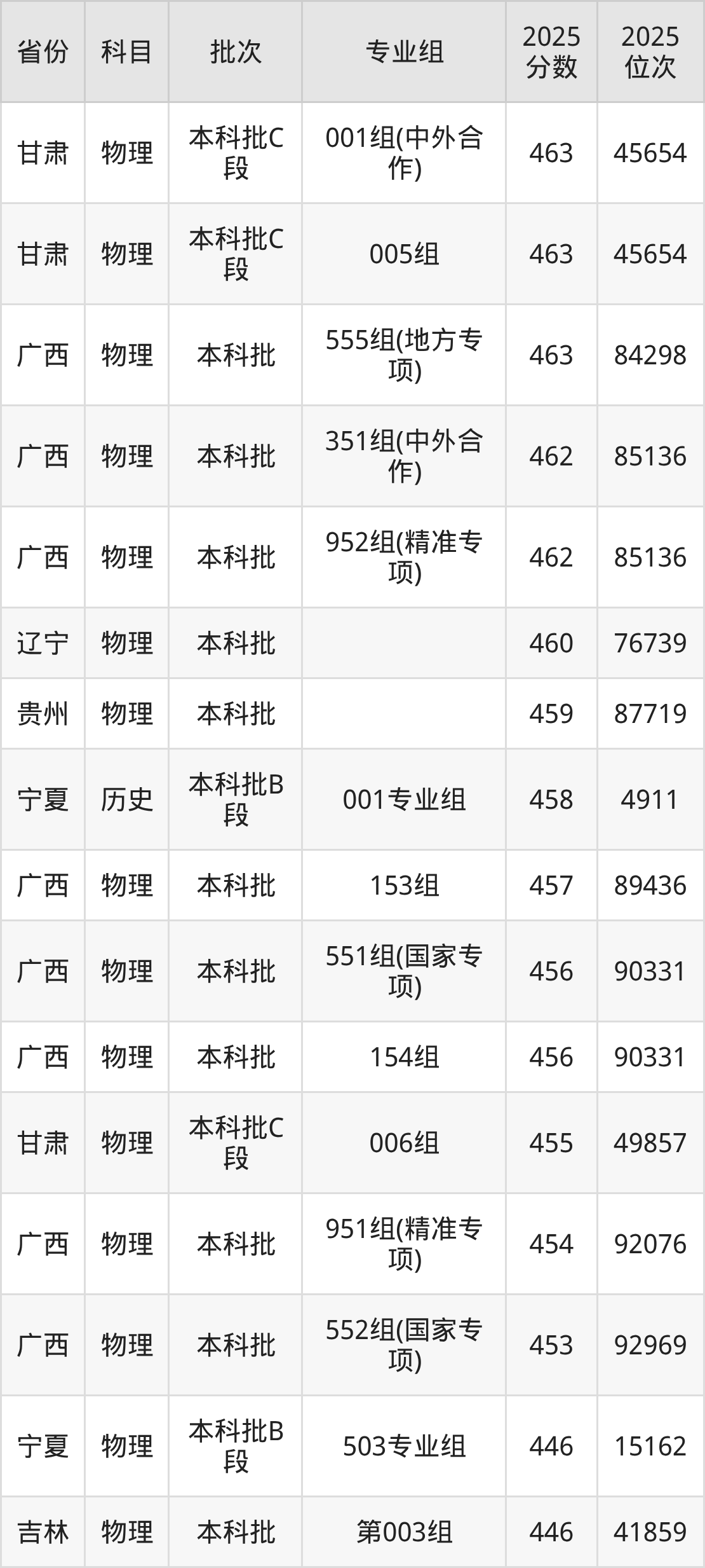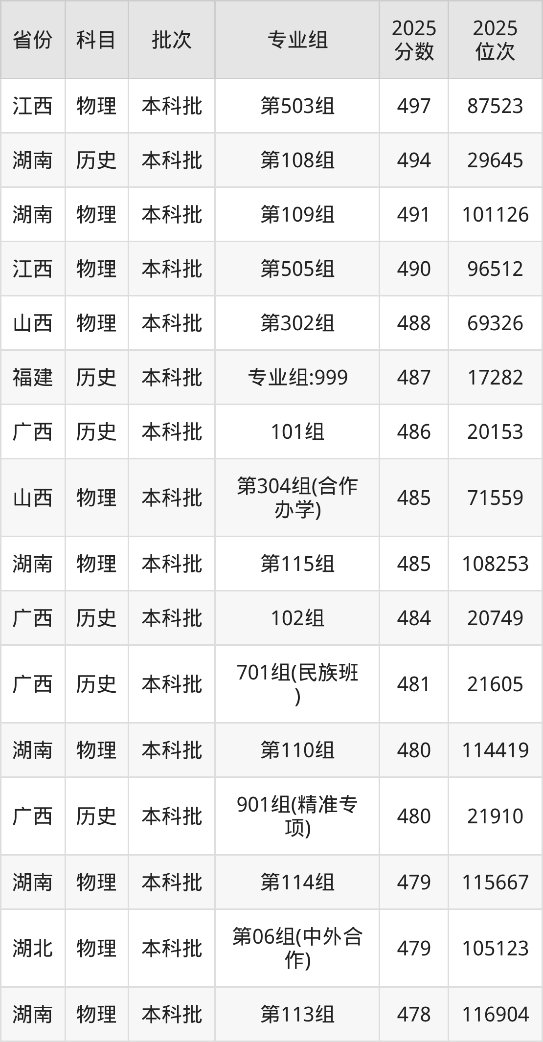 下面是2025年北部湾大学在全国各省录取最低分数据及位次,各位考生也可作为一个参考。