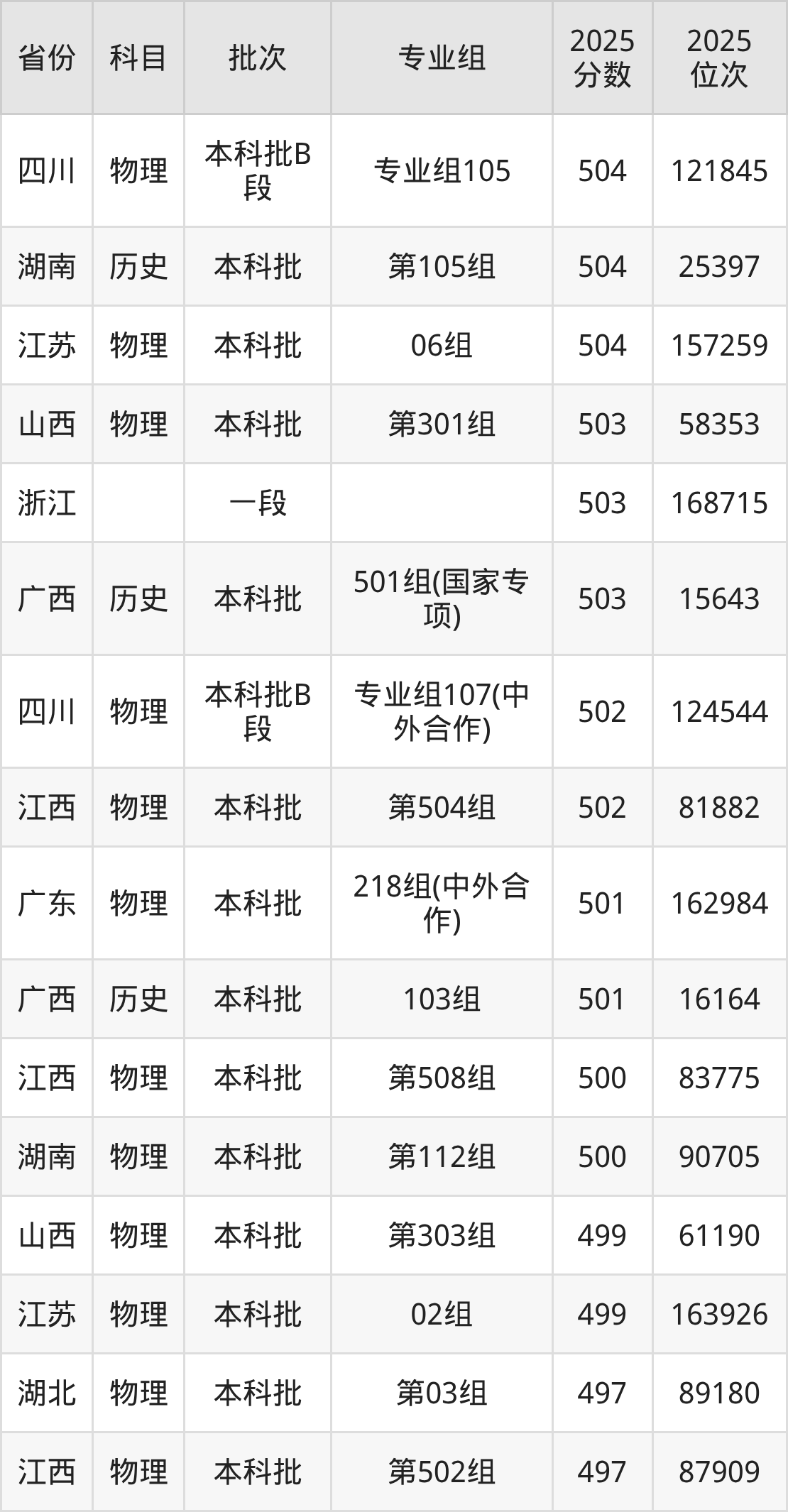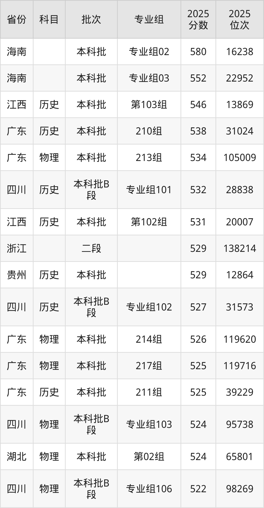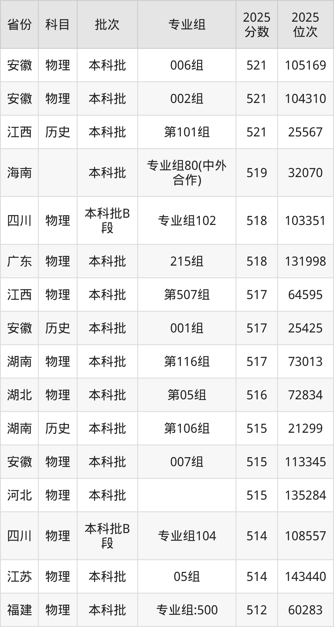 下面是2025年北部湾大学在全国各省录取最低分数据及位次,各位考生也可作为一个参考。