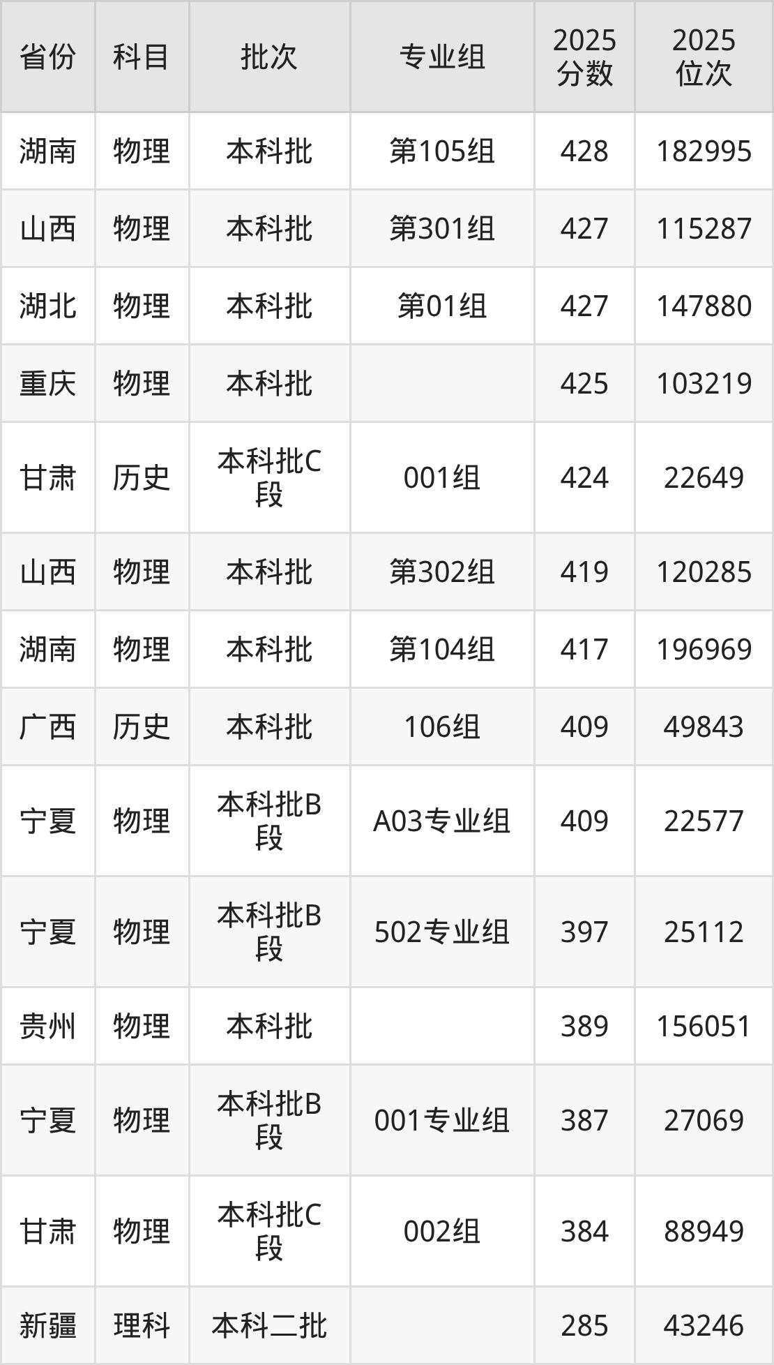 参考2025年重庆市高考招录数据,按照分数线从高到低依次为大家展示延安大学西安创新学院各个专业录取分数线。