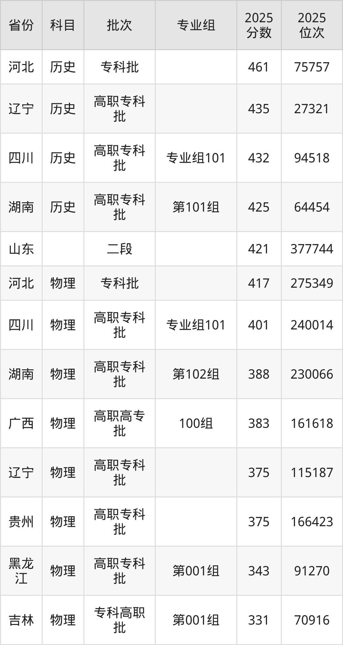 参考2025年山东省高考招录数据,按照分数线从高到低依次为大家展示红河卫生职业学院各个专业录取分数线。