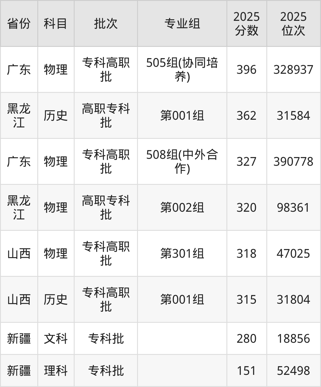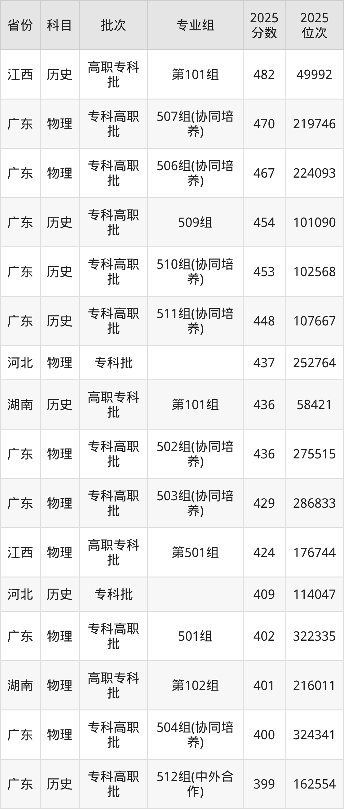 下面是2025年广东科贸职业学院在全国各省录取最低分数据及位次,各位考生也可作为一个参考。