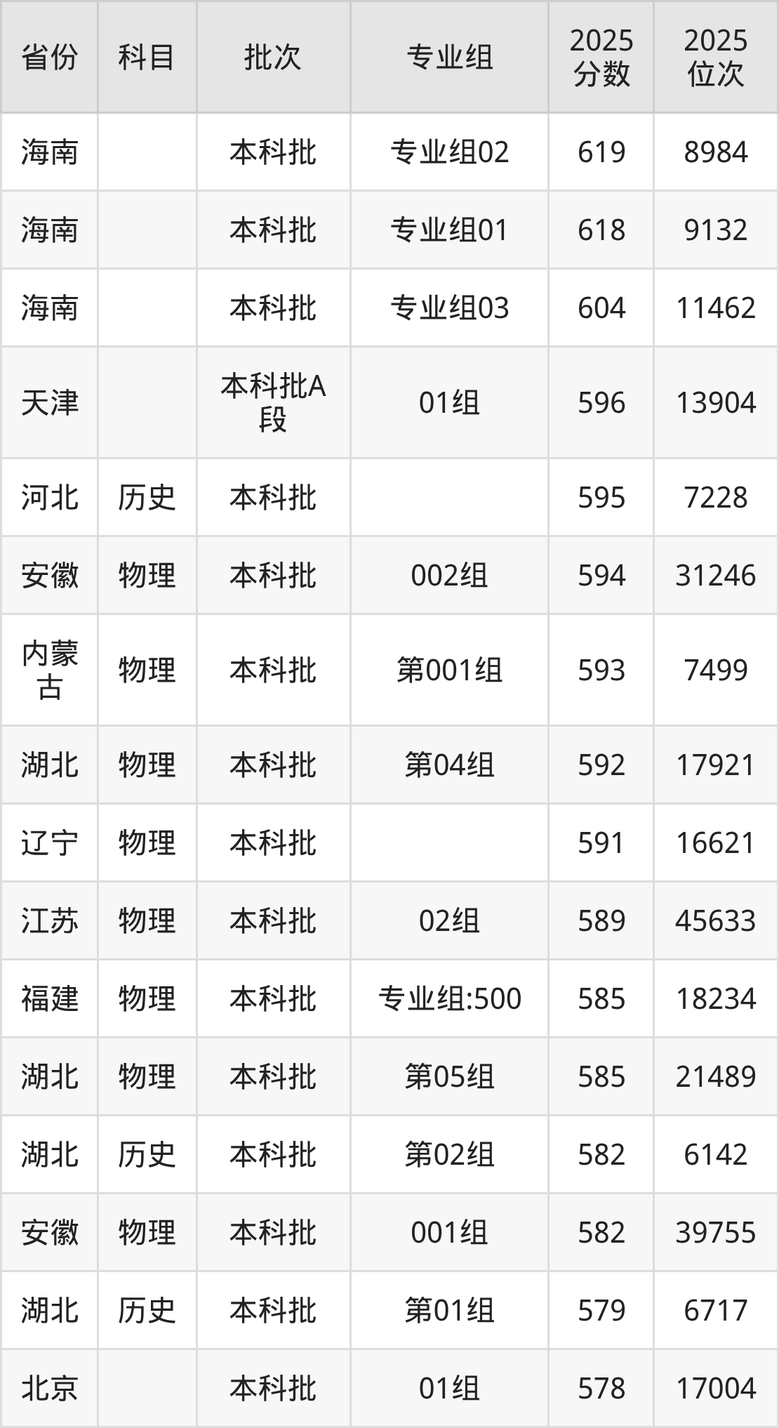 下面是2025年武汉科技大学在全国各省录取最低分数据及位次,各位考生也可作为一个参考。