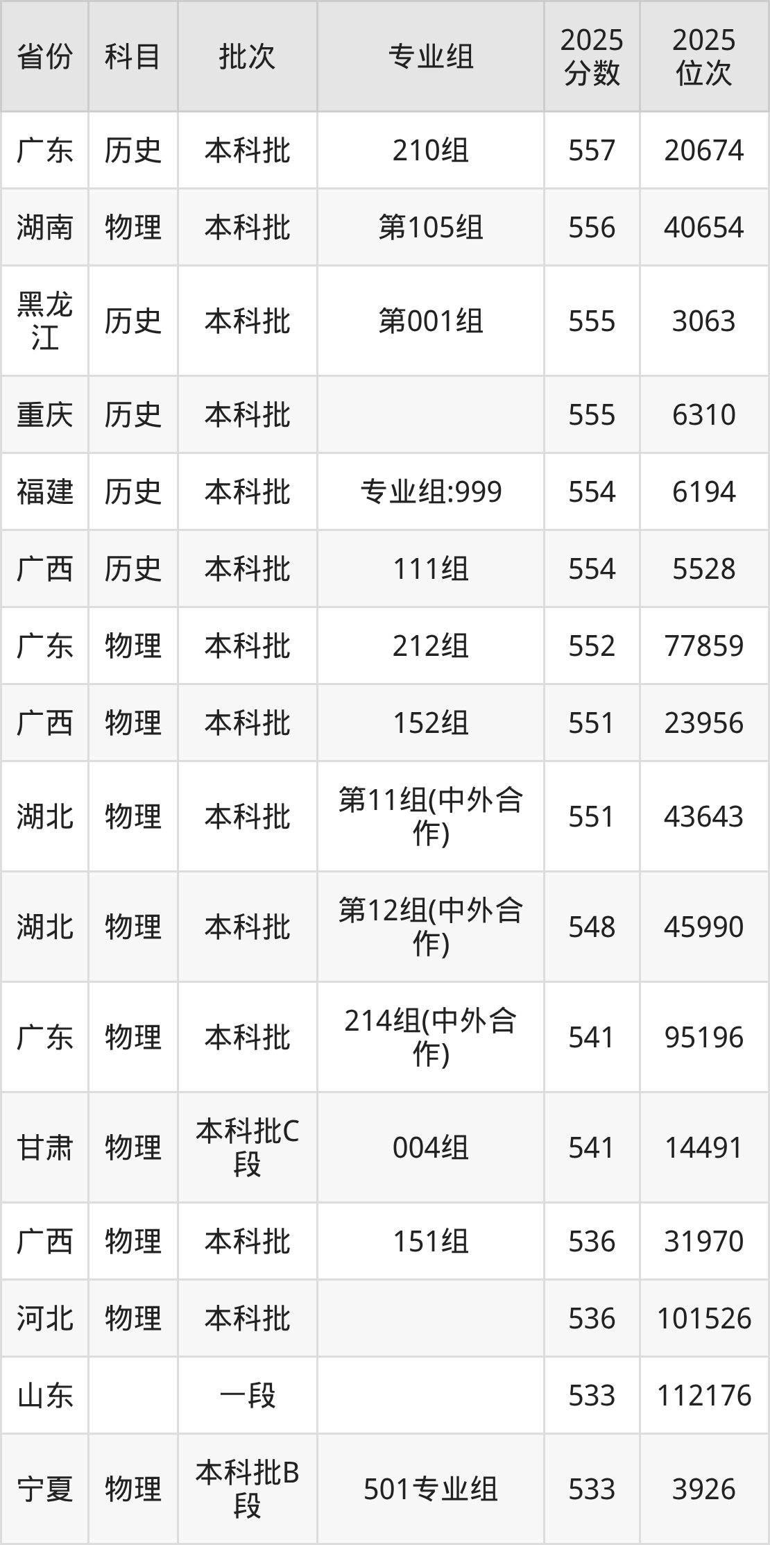 参考2025年山东省高考招录数据,按照分数线从高到低依次为大家展示武汉科技大学各个专业录取分数线。