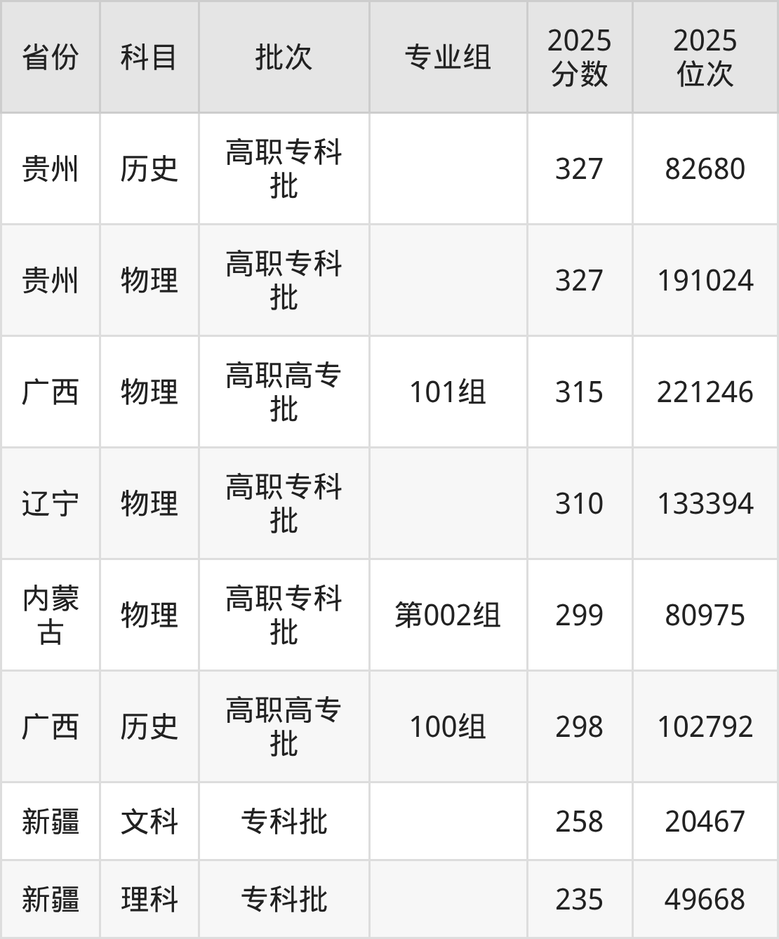 下面是2025年天津交通职业学院在全国各省录取最低分数据及位次,各位考生也可作为一个参考。
