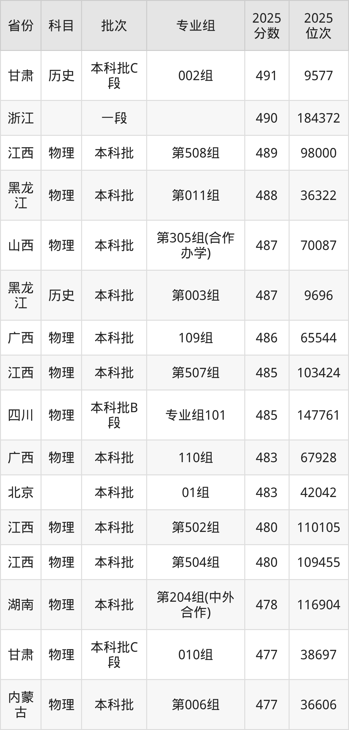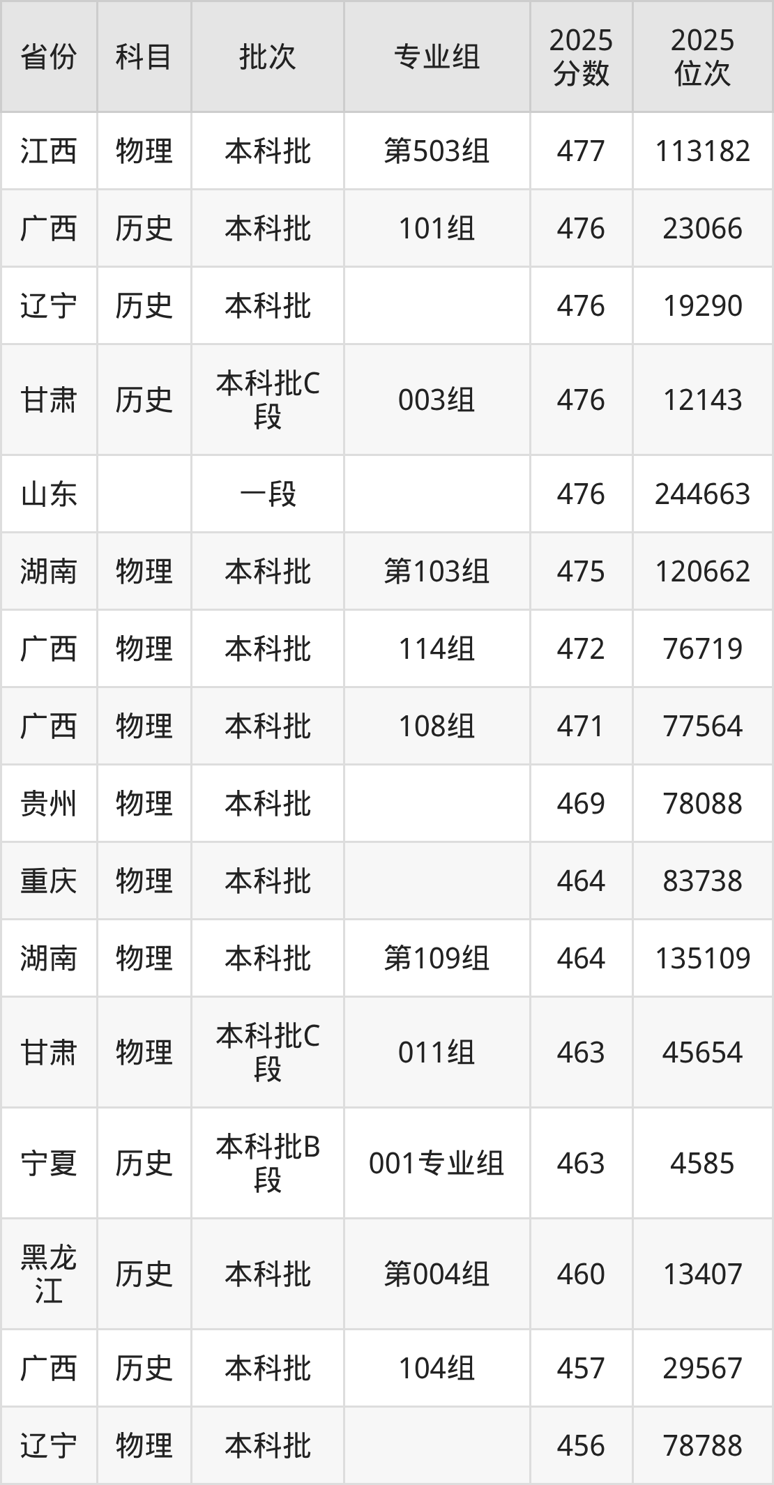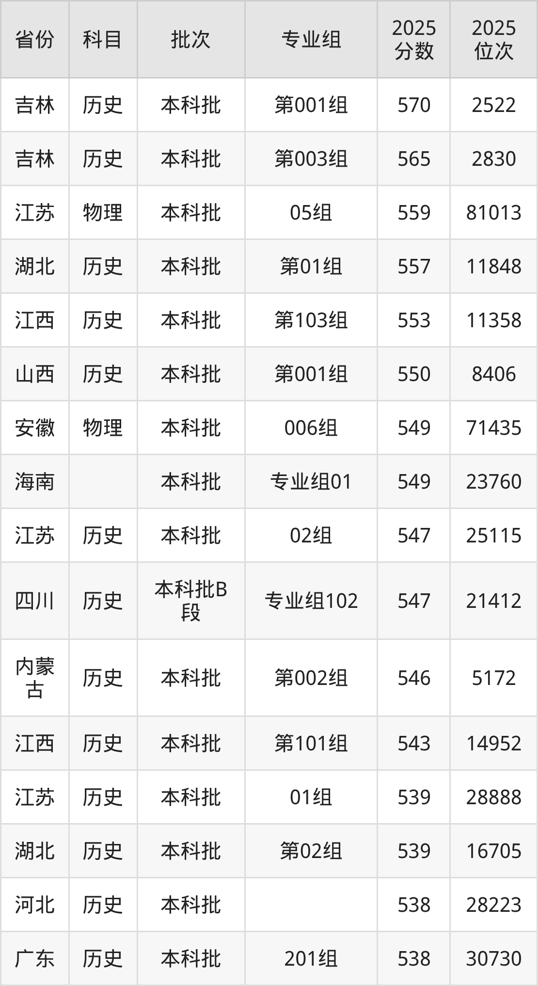 下面是2025年渤海大学在全国各省录取最低分数据及位次,各位考生也可作为一个参考。