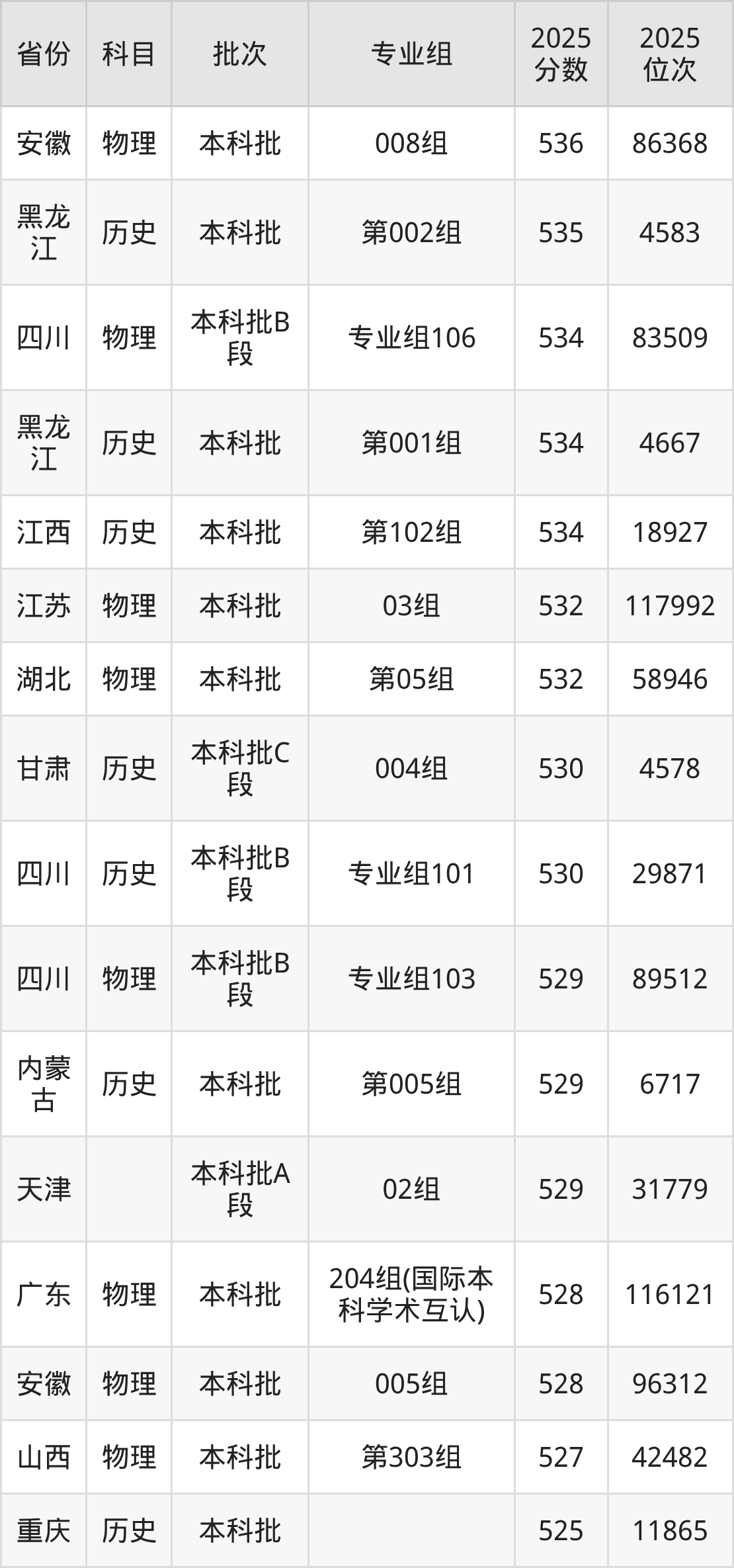 4、新闻学:536分、位次107877名;