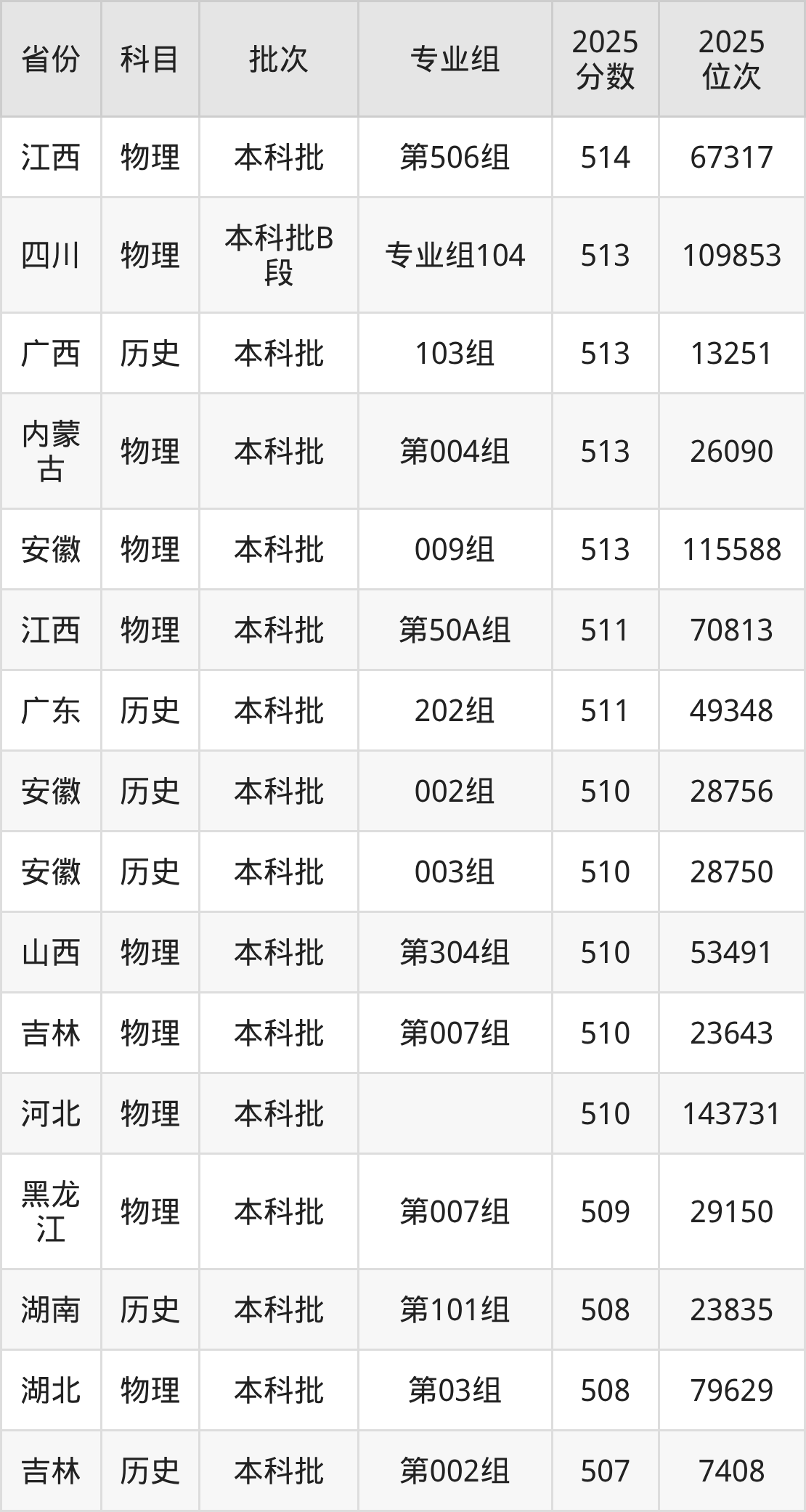 10、电气工程及其自动化:516分、位次148469名;