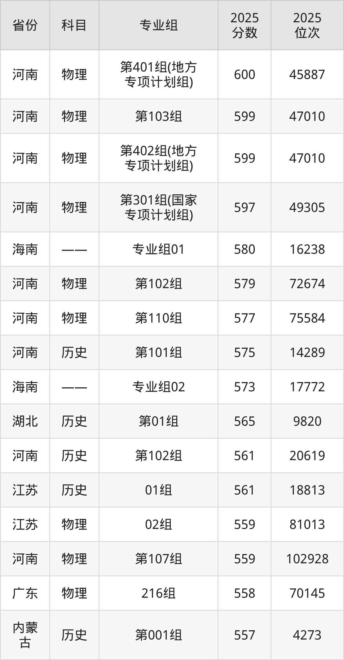 2025年河南科技大学全国录取分数线404分到600分,录取最高在河南(物理类第401组(地方专项计划组))、录取最低在新疆(理科)。