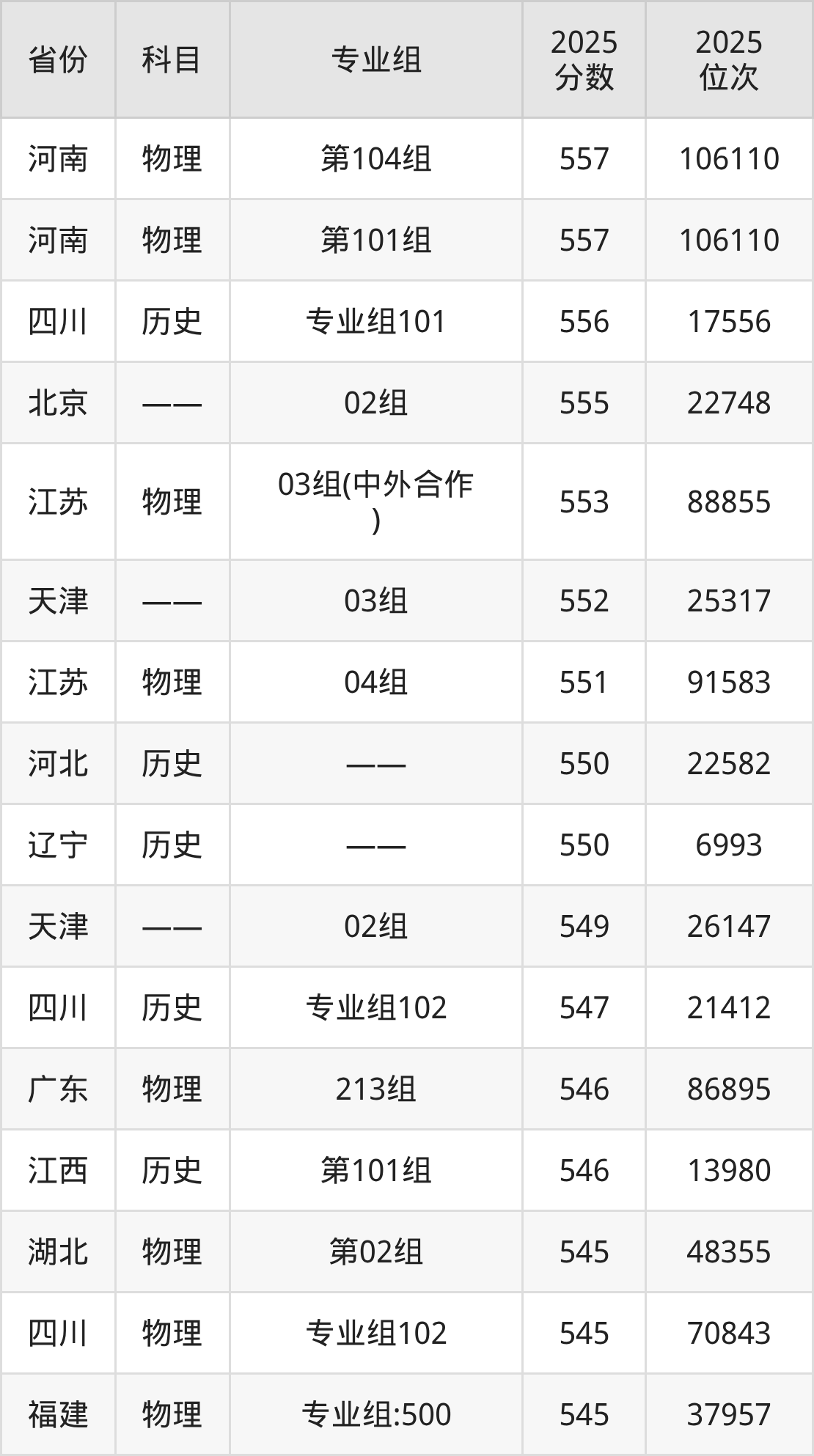 参考2025年山东省高考招录数据,按照分数线从高到低依次为大家展示河南科技大学各个专业录取分数线。