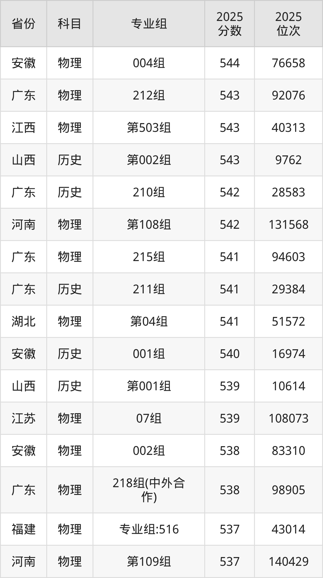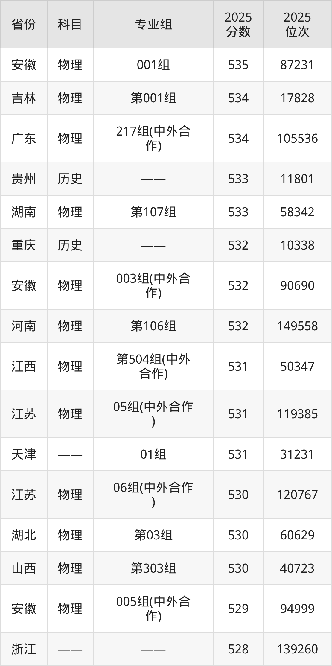 14、自动化(中外合作办学)(与俄罗斯托木斯克理工大学合作项目):532分、位次114330名;