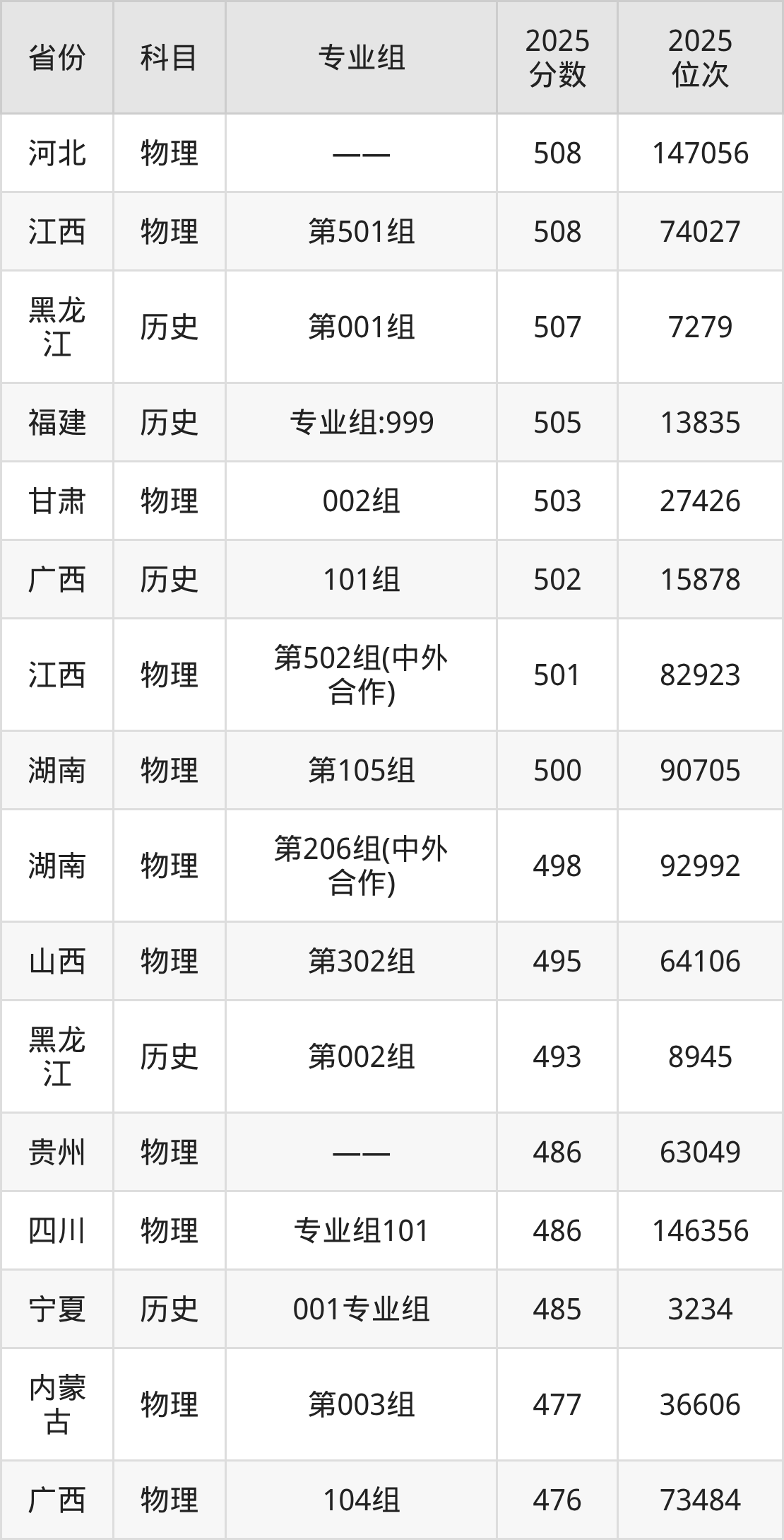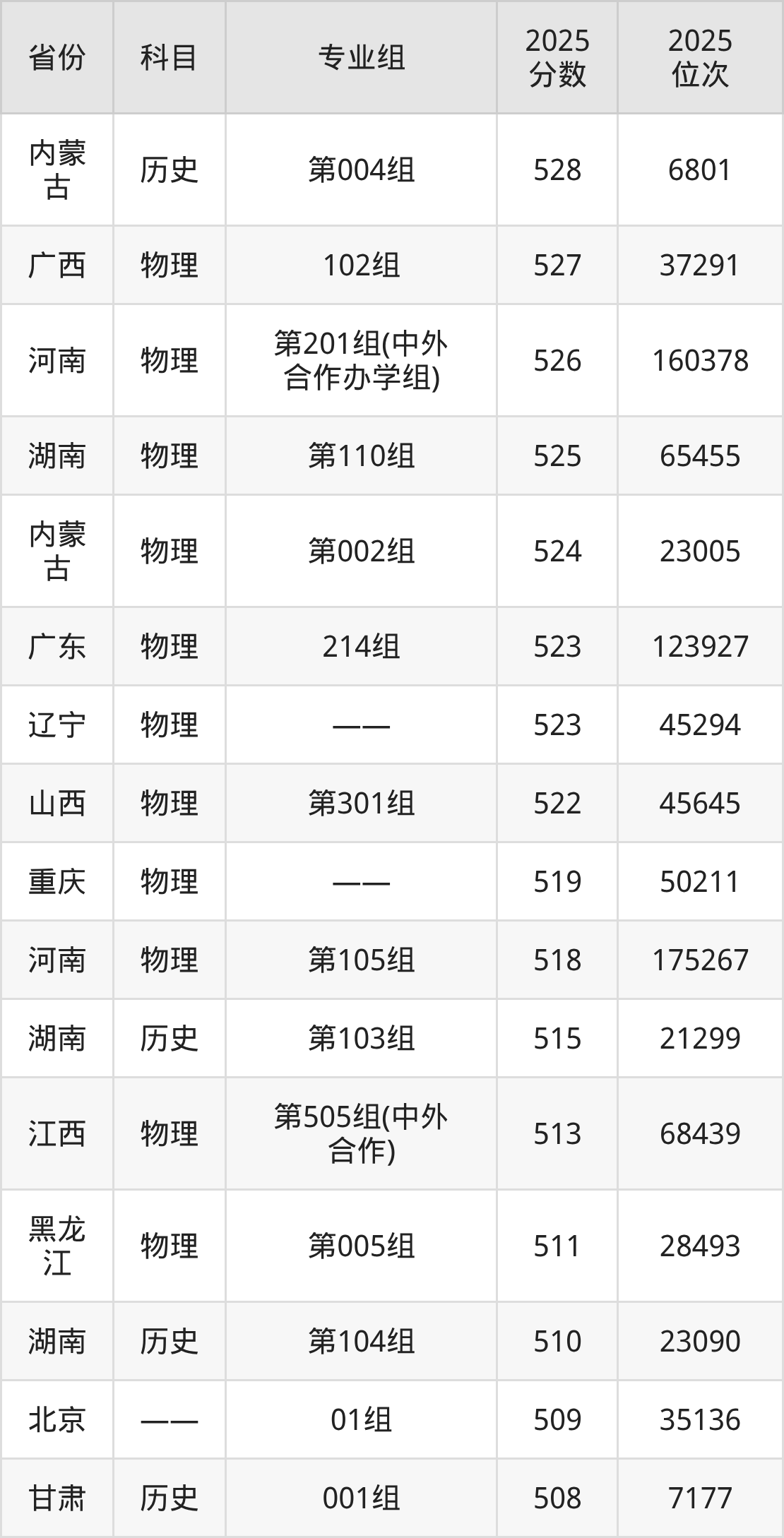 下面是2025年河南科技大学在全国各省录取最低分数据及位次,各位考生也可作为一个参考。