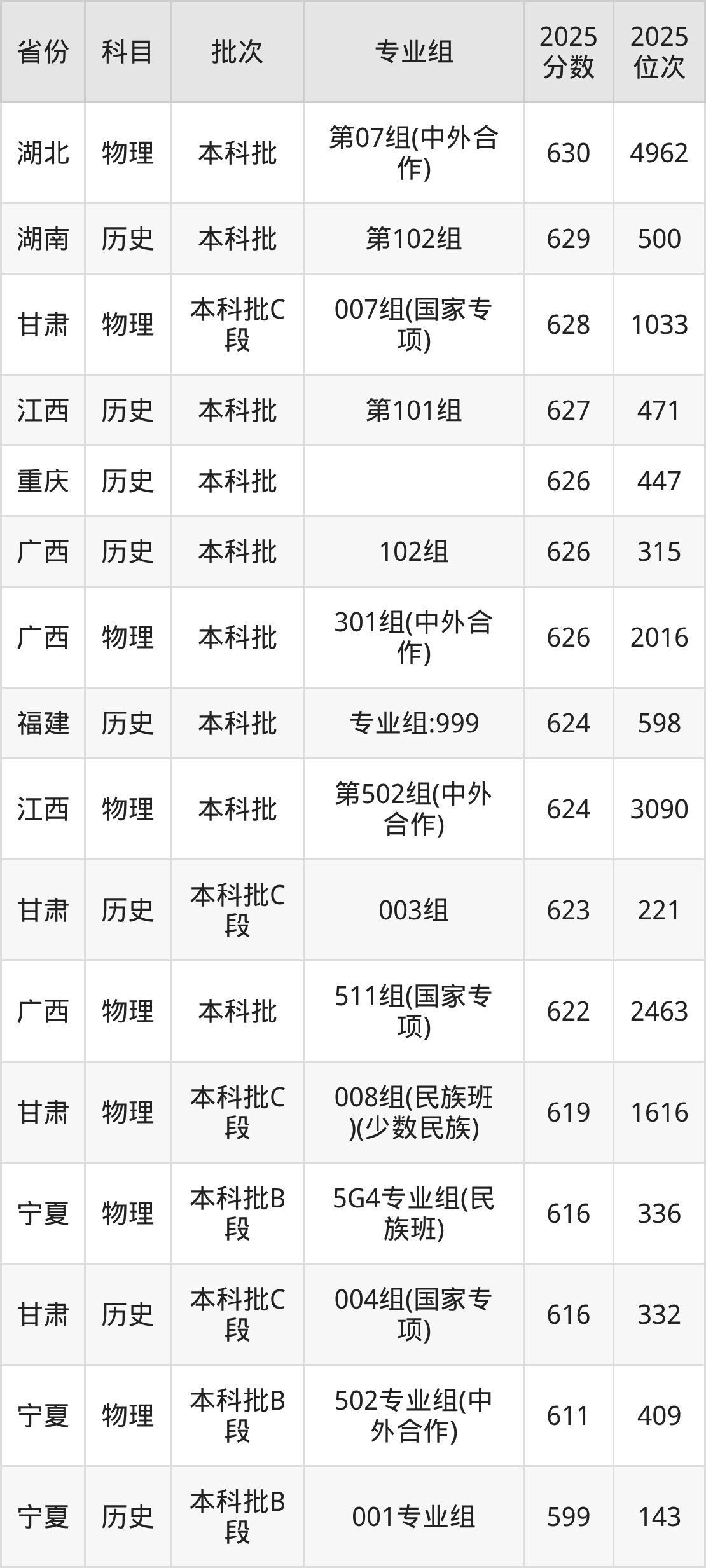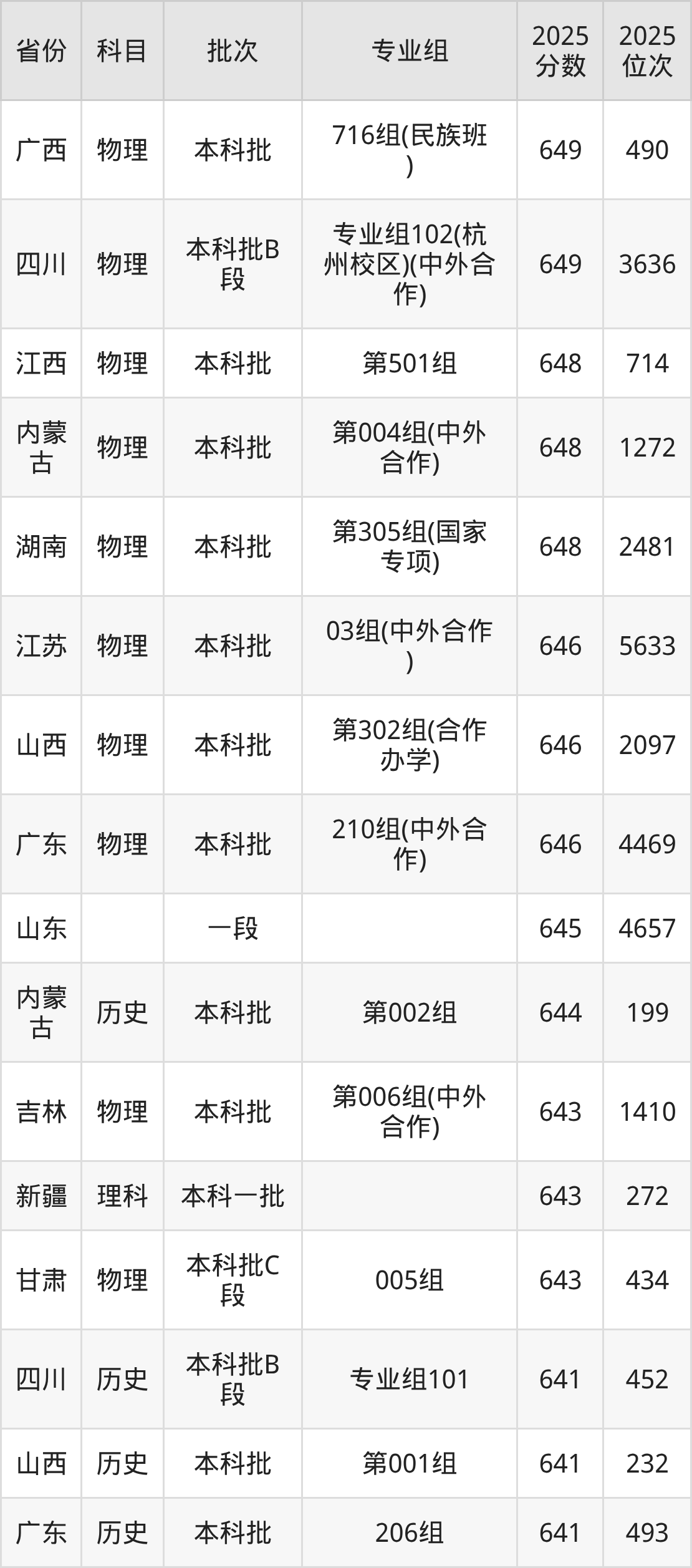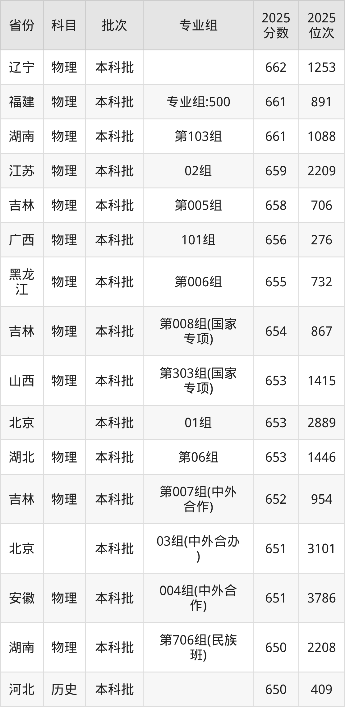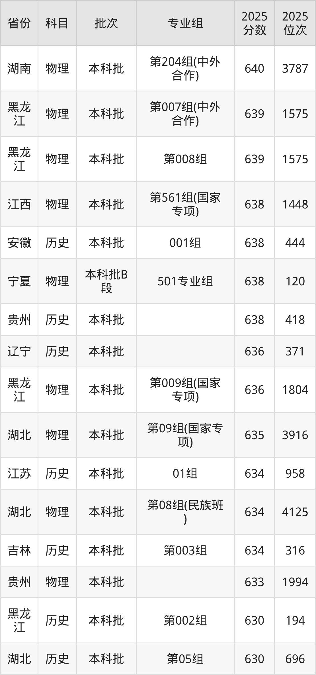 18、社会科学试验班(包含专业:经济学、行政管理、法学):645分、位次4657名;