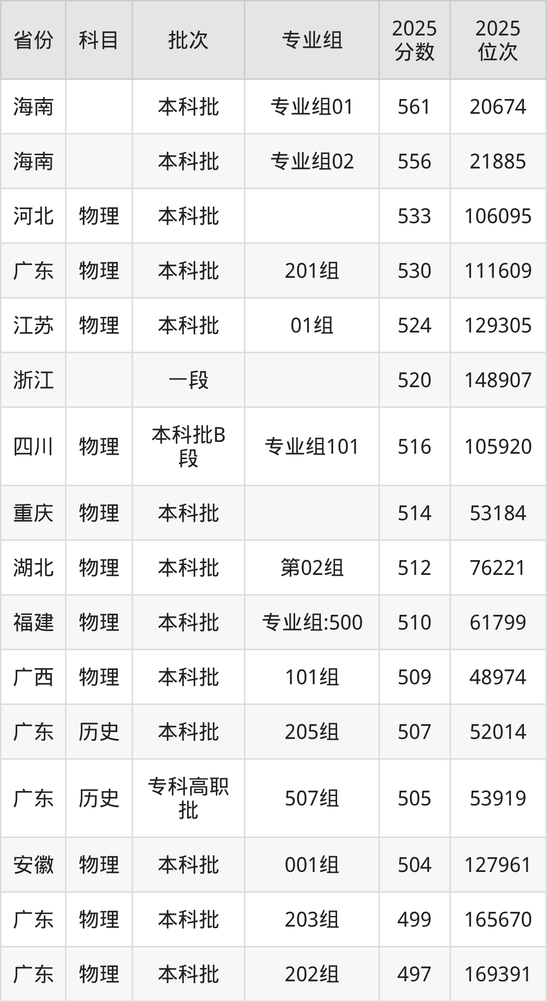 2025年肇庆医学院全国录取分数线276分到561分,录取最高在海南(专业组01)、录取最低在新疆(理科)。