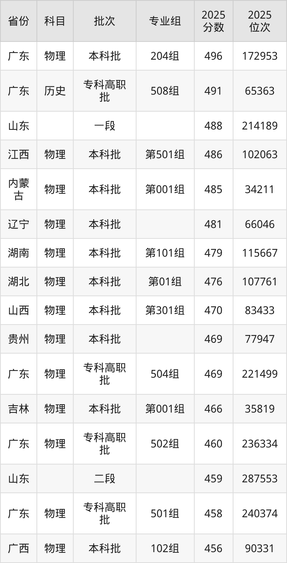 参考2025年山东省高考招录数据,按照分数线从高到低依次为大家展示肇庆医学院各个专业录取分数线。