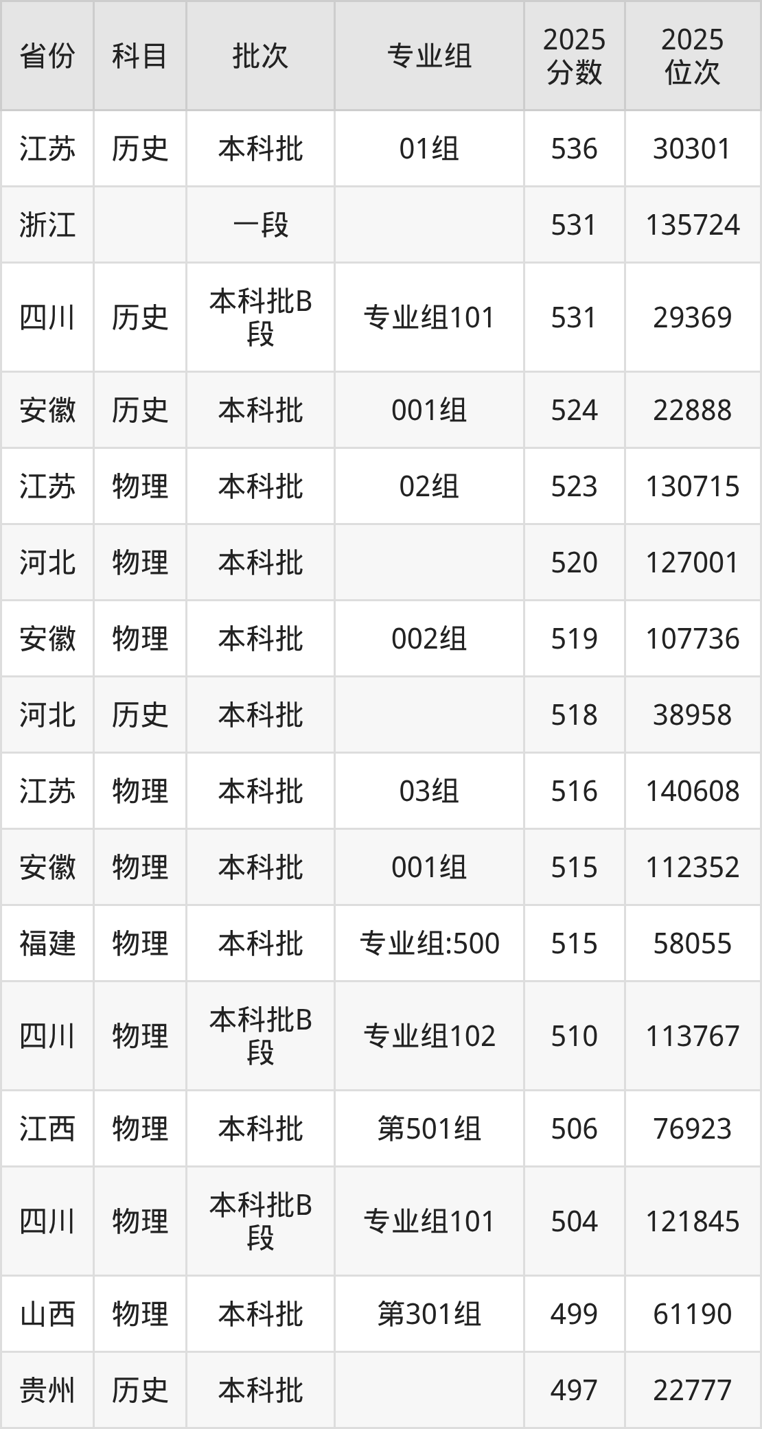 下面是2025年绍兴理工学院在全国各省录取最低分数据及位次,各位考生也可作为一个参考。