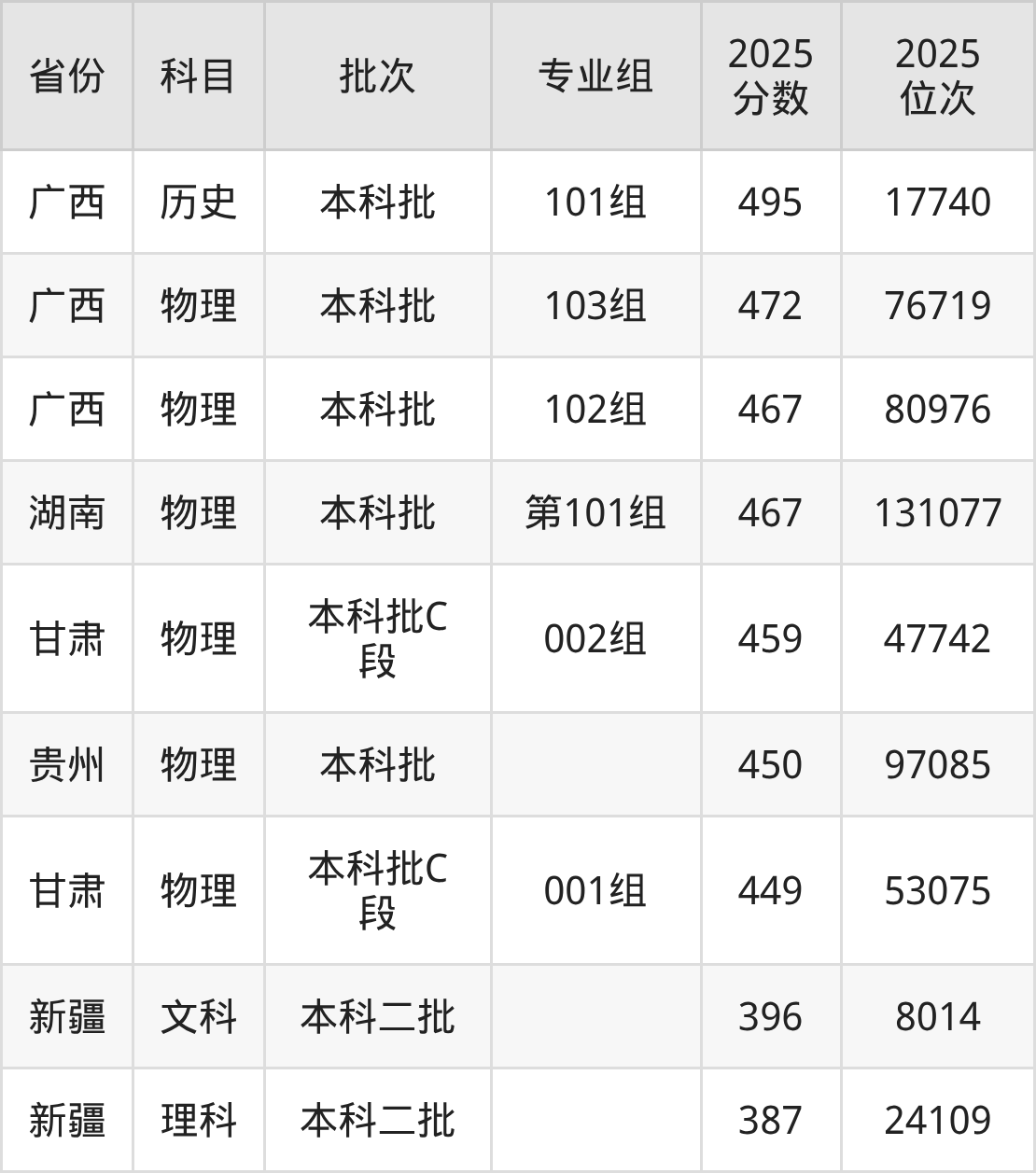 2025年绍兴理工学院全国录取分数线387分到536分,录取最高在江苏(01组)、录取最低在新疆(理科)。