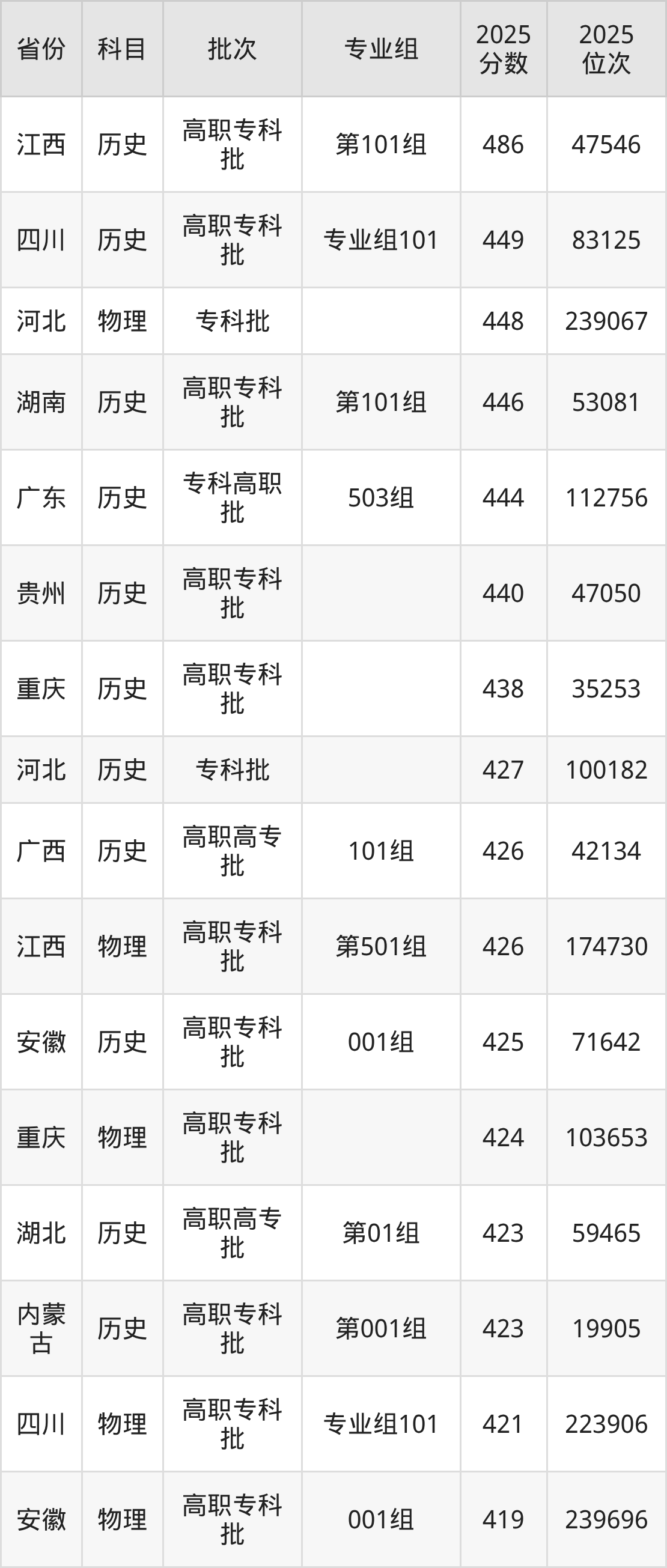 2025年漳州职业技术学院全国录取分数线261分到486分,录取最高在江西(第101组)、录取最低在新疆(理科)。