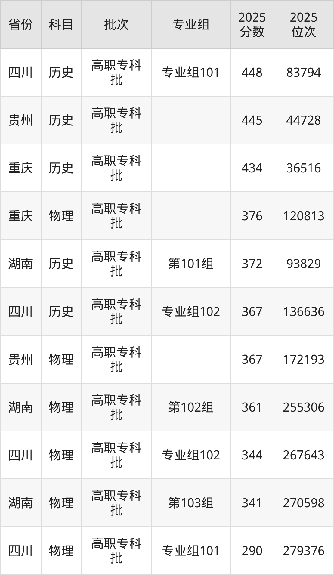 下面是2025年达州职业技术学院在全国各省录取最低分数据及位次,各位考生也可作为一个参考。